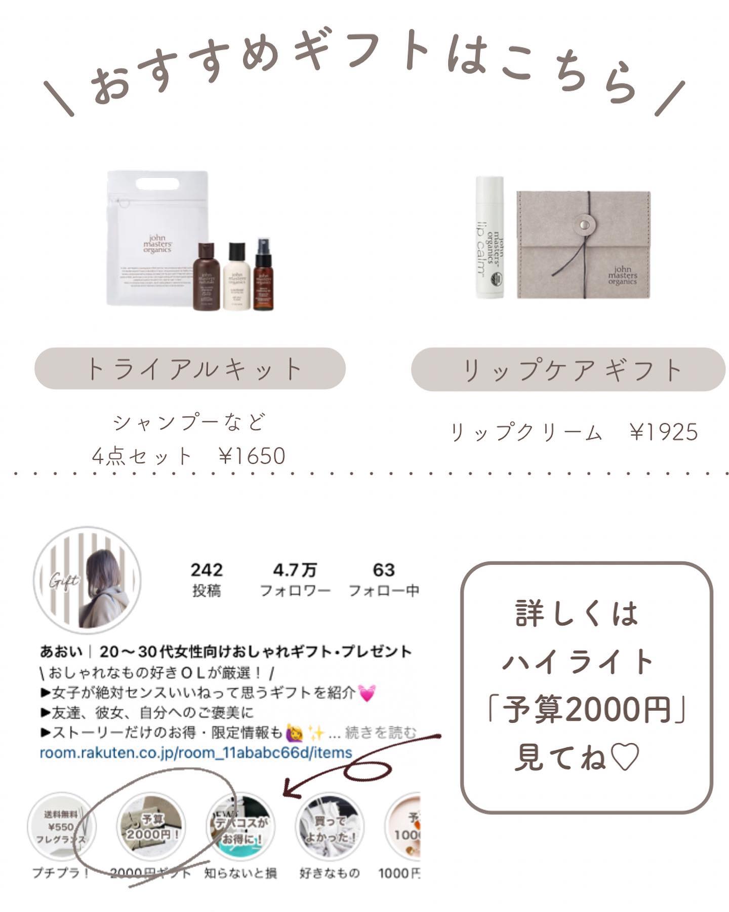 20〜30代向け!絶対センスがいいっ!って 思われるギフトや自分へのご褒美にもなる おしゃれなアイテムをたくさん紹介中❤️ ジョンマスターのはweb限定、購入した人だけしか買えないから予算1,000円じゃないけど紹介したくて入れちゃいました🥹笑 ストーリーではここだけの限定情報やお得情報も🎁