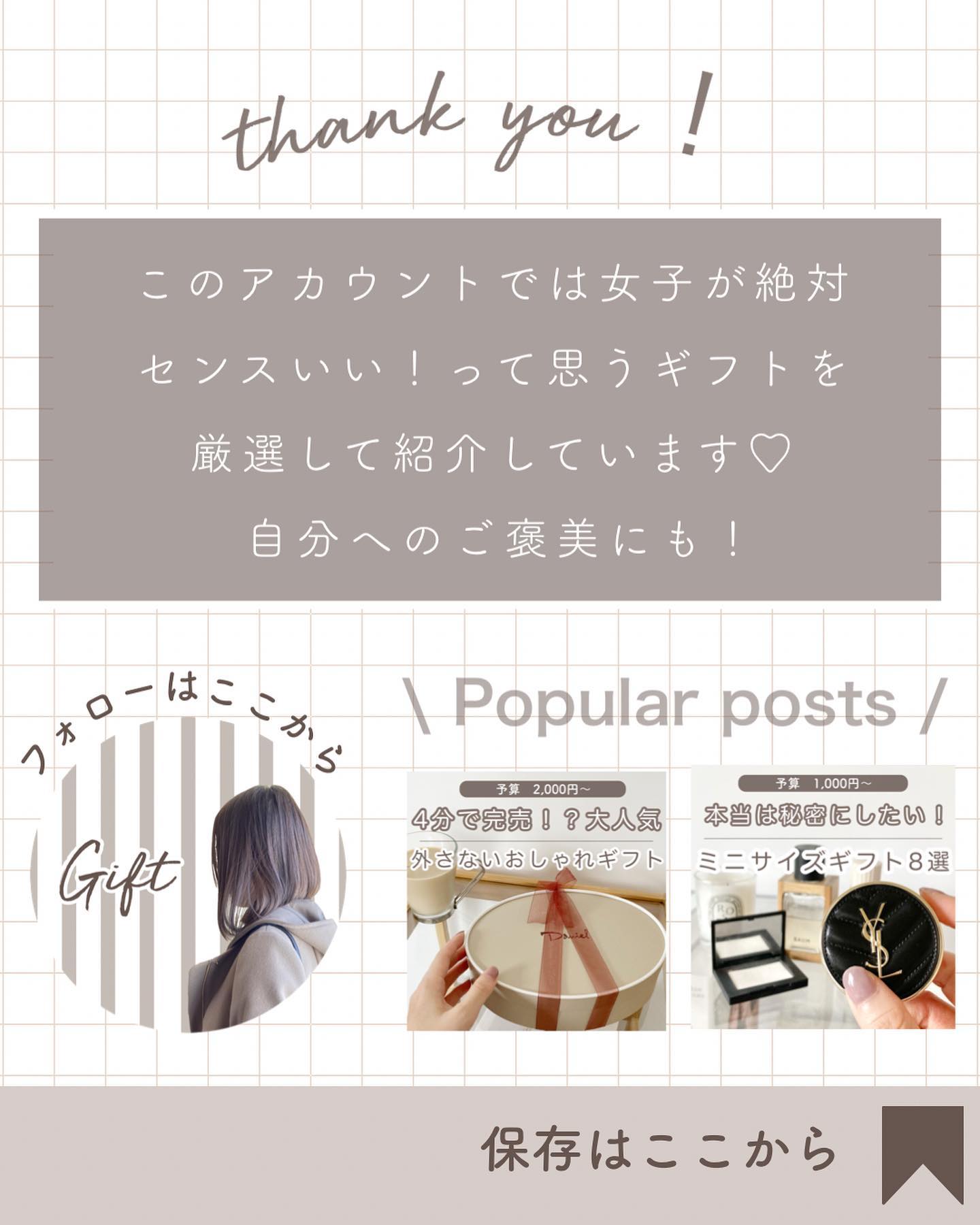 プチプラだからお配り用や自分への プチプレゼントにしてもいいね😍 20代向けの贈って喜ばれるギフト& 自分へのご褒美にもなるおしゃれな アイテムを紹介してるよ❤️ 限定情報やお得情報もストーリーでお知らせ🎁