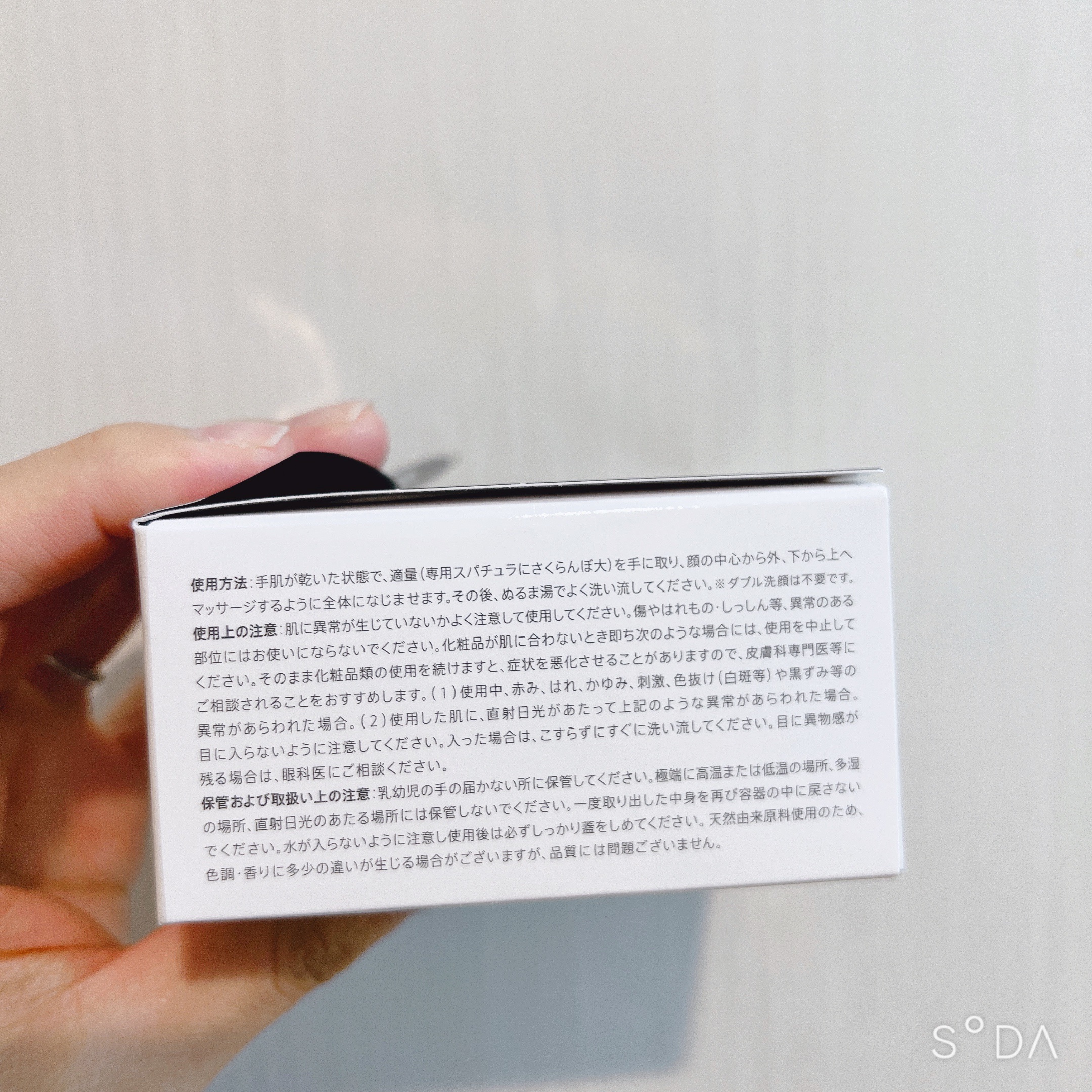 - ●独自の炭を配合したバームの特殊構造が肌にダメージを与えず、毛穴の汚れや古くなった角質を除去します。W洗顔不要。 ●毛穴の黒ずみ悩みに着目した31種の整肌成分を独自に配合。肌をほぐしなめらかな肌に整えます。 ●シトラス精油の香り。 ●アレルギーテスト・敏感肌の方によるパッチテスト済み ( 全ての方にアレルギーや皮膚刺激が起こらないということではありません。) ノンコメドジェニックテスト済み(全ての方にニキビのもとが発生しないということではありません。)