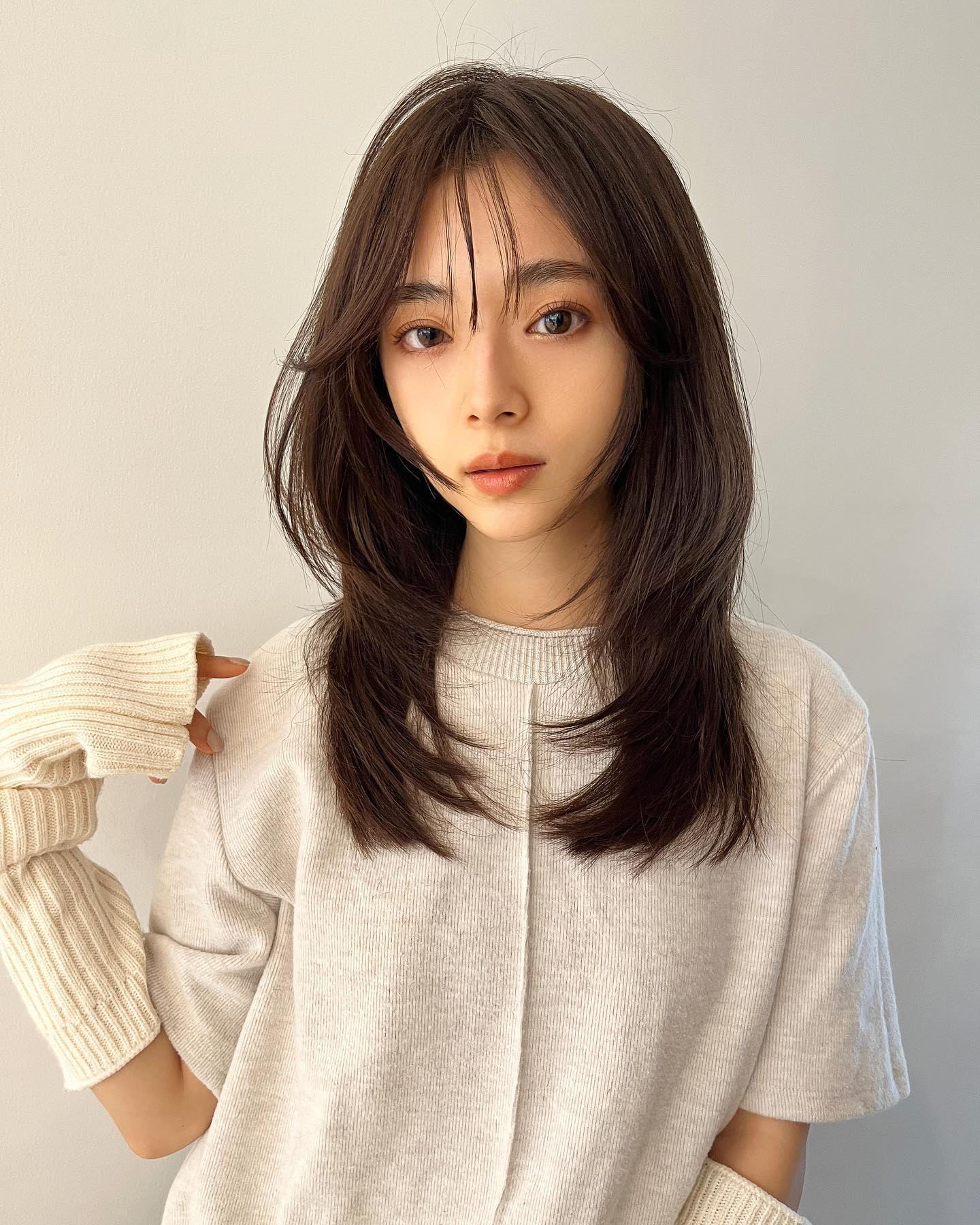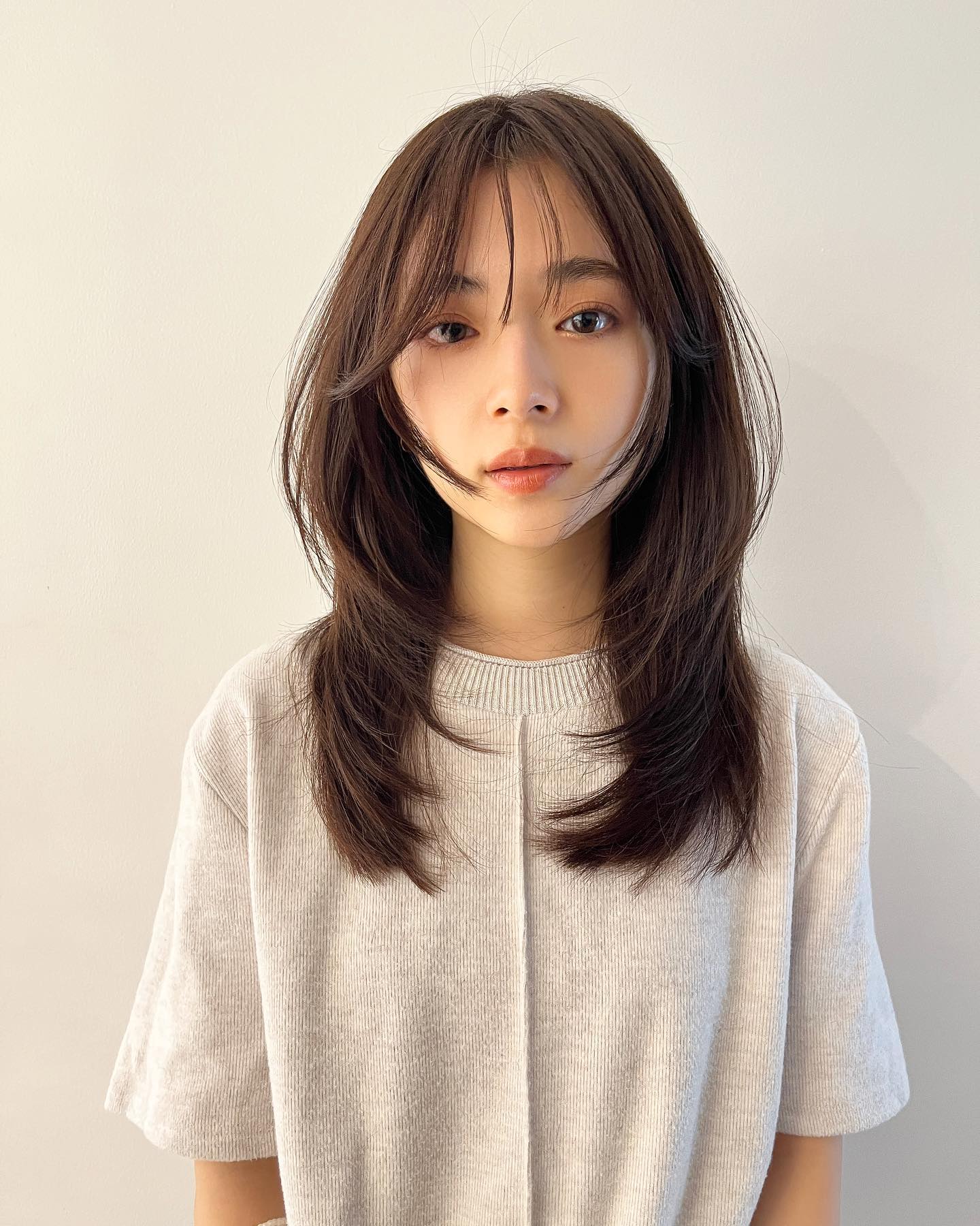 カットの一コマ😽.顔周りと前髪の切り方でこんなに変わる🙀❤️.#韓国ヘア#薄め前髪#シースルーバング#レイヤースタイル#カット動画...