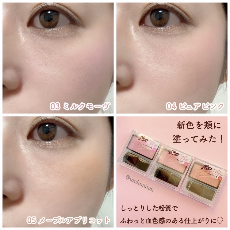 密着性が高く頬に馴染み、まるで肌の内側からにじみ出るような自然な血色感を演出します。 肌馴染み抜群!!しっかりつけても、ムラになりにくく、肌馴染みもとってもいいです!! とにかく使いやすく、肌馴染みも抜群で、失敗知らずなチークと言ったらこれ!!♡
