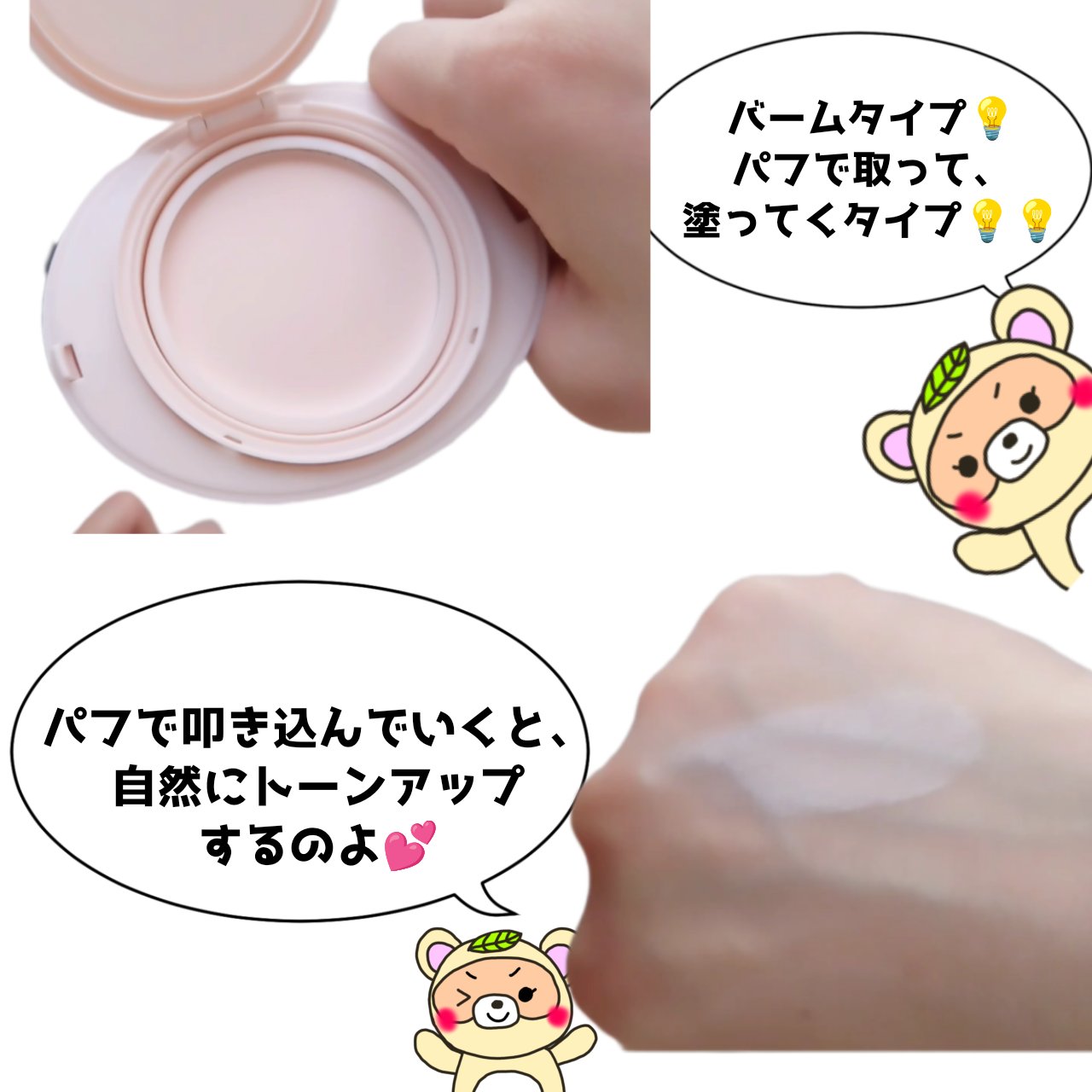- お出かけ前にパフで軽くサッと塗って、紫外線対策からトーンアップ、メイクベースまで1個に凝縮!忙しい方にピッタリなウリリウサンバームです。たまご型のパッケージ構造で持ち運びが便利。自然から生まれた3つの水分を構成し、爽やかなうるおいを与え、お肌への刺激の少ない使い心地です。お子様まで使用可能で、家族で使用いただけます。