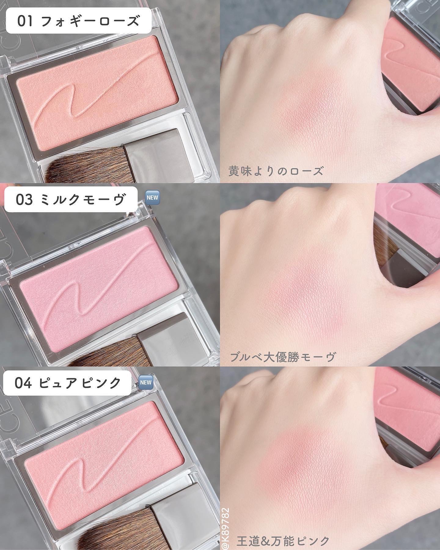 可愛さと万能さを兼ね備えた白みピンクのチークを手持ち全部スウォッチ✔️ 薄付きだから調整しやすいし、他のチークに重ねて使っても良し!何より肌に透明感が出るから大好き👶🏻 この中でも特に白みが強いのはフォレンコスの01ベビー、ロムアンドのW02、ペリペラ06番かな?韓国コスメならではの色味が欲しいならこの3つは間違いなし。 どれもドバッと色が乗らず淡い発色なので失敗なし。チーク付けてます感出したくない人や、ナチュラルメイク派さんにおすすめ🙋🏻♀️ 唯一クリームチーク系なのはキャンメイクの新作マカロンフレーズ!国産コスメでこの色味、珍しくないですか???クリームだから水彩絵の具のように自然にぽわっと色付くのが可愛い😭パウダーの質感が苦手な方や、指で少しずつ付けたい人におすすめ。