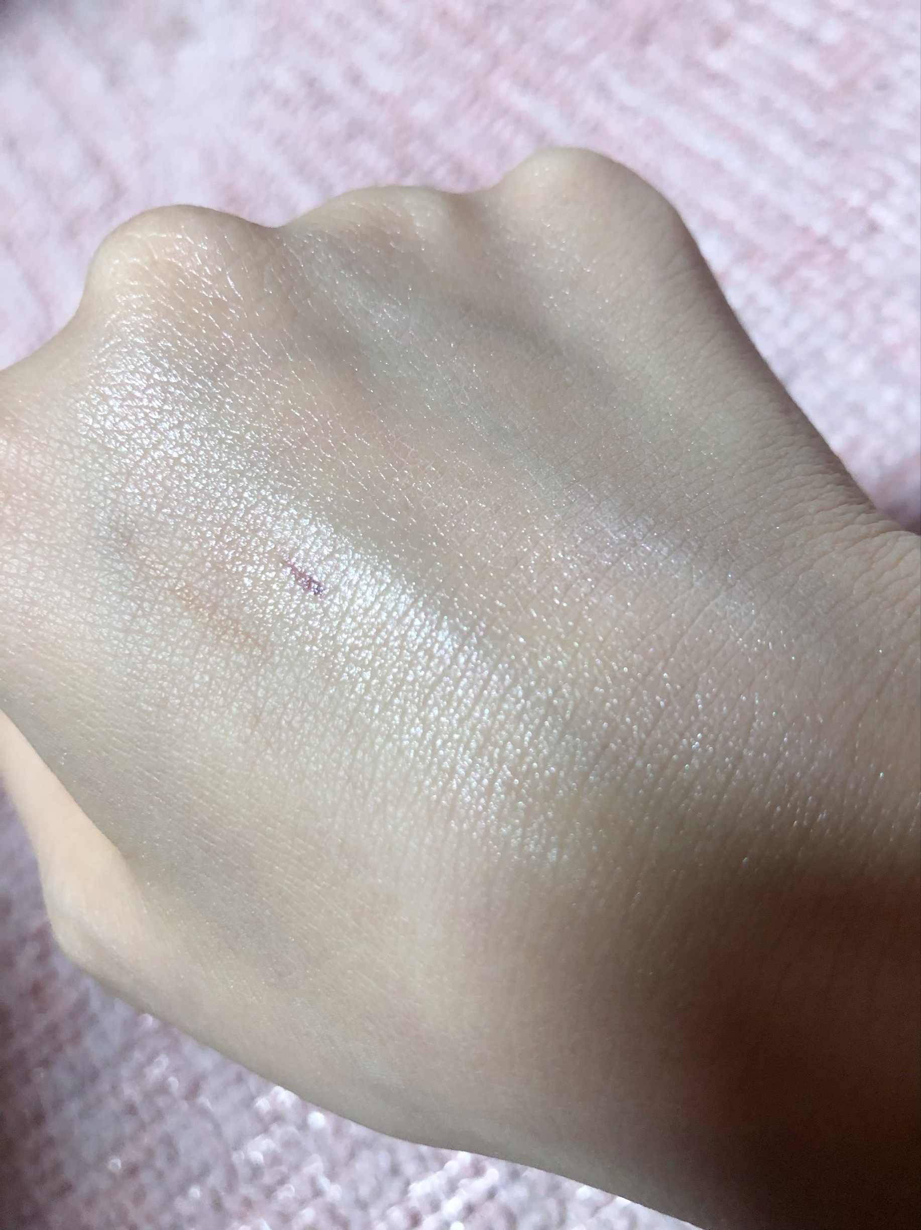 まず、1プッシュ出してみると一見めっちゃ白くてえ、これ馴染むのか…? みたいなクリームが出てきます😂 もっと薄く塗り広げるとキラキラ感とかはなく、ツヤ!って感じでめっちゃよかったです… ただ皮脂が多い鼻のあたりは少し崩れる感じがしたので、オイリー肌の人よりも乾燥肌な人向けな感じはしました🥺