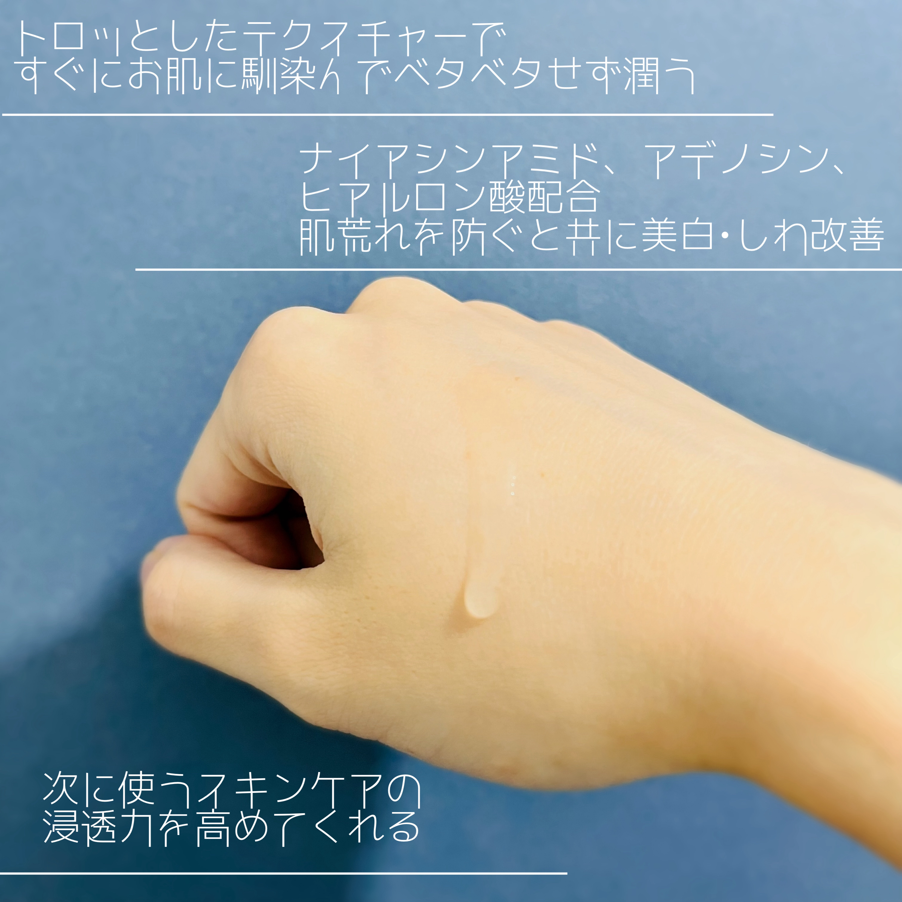 | 出した時はとろっとするのに 肌にのせると ぱしゃっとはじけるように すごくみずみずしく感じるの😇 | 詳細を見る | ||