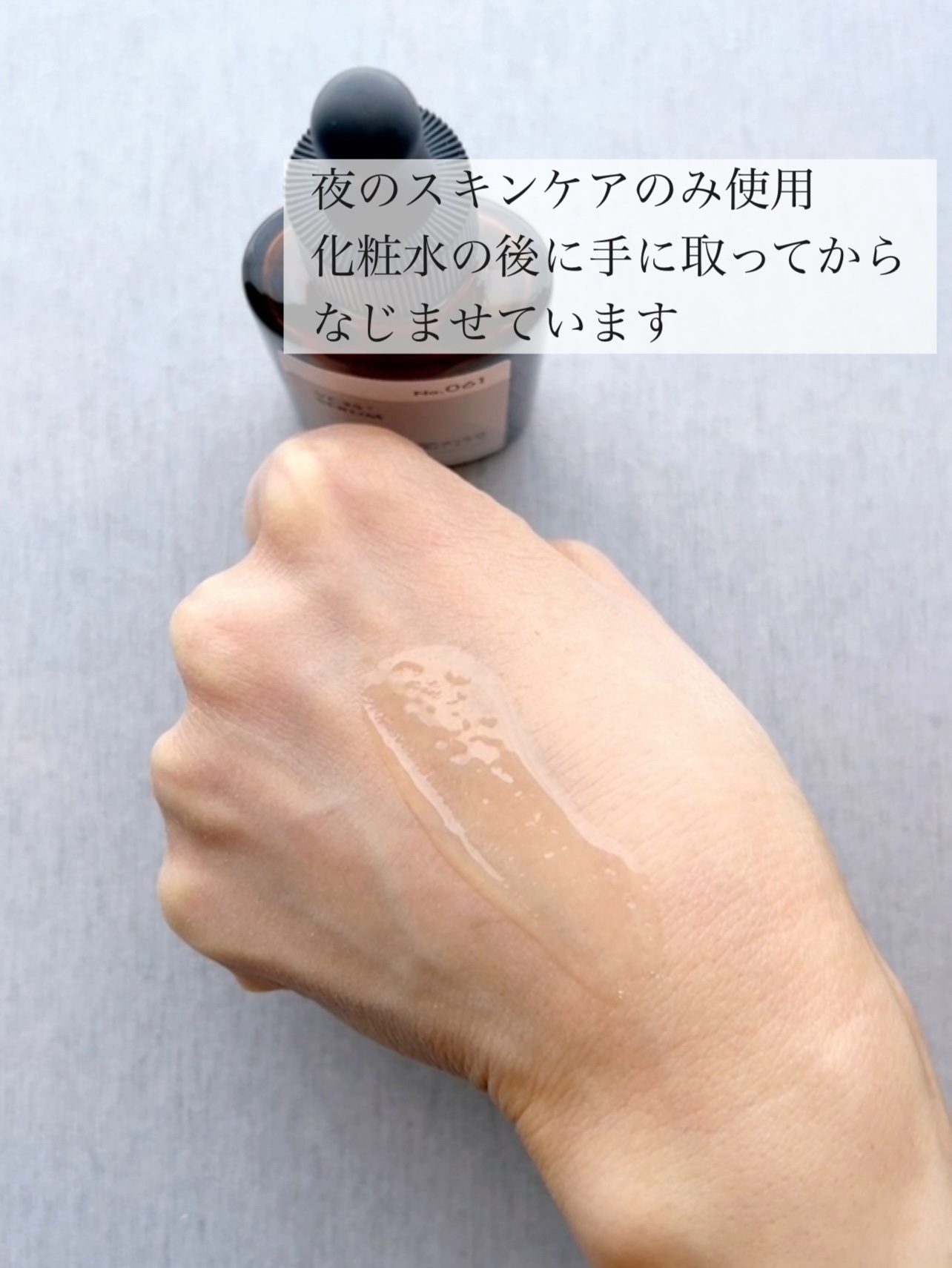タオルドライ後、500円玉大を髪の根本から毛先へ、ミディアムなので2回(500円玉2個分)なじませています サラサラの水のようなテクスチャーで、濡れた髪にもスーッとなじむので使いやすい オイルのようにベタついたり、ヌルヌルしたりしないので、根本からかきあげながら指を通して毛先にもみこむように使っても全然イヤじゃない オイルなどだと基本毛先から中間までしかなじませられないけれど、これは根本からつけられて、地肌もべたつくこともないから使いやすい 乾かしたあとの髪はサラサラ 乾くまでの時間も少し早いのかもしれない ただ初めて使ったときは香りの強さにビックリしました 私の場合1回目では良さがわからず、使い続けていくうちに髪がサラサラ+ストンとまとまって、良さを実感する事ができました 今ではドライヤーで乾かしたあとの仕上がり、髪がベタつかない使用感などが気に入り、アウトバストリートメントのスタメン入りとなりました