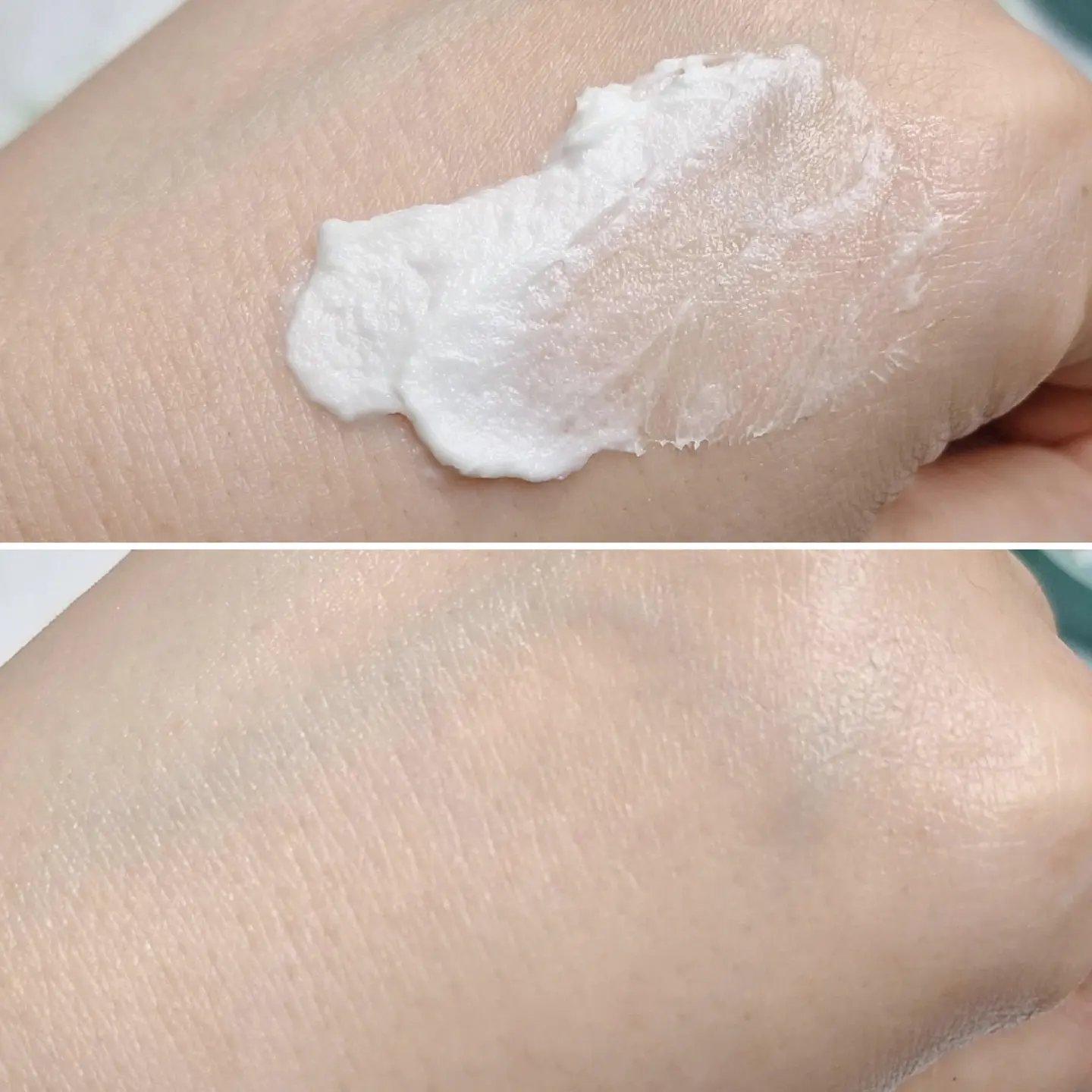 硬めのテクスチャーでチューブを強く押さないと出てきません🤣笑 米粒1粒程度という極小量で、両目の上下まぶたが十分に塗れます❗ 色は少し白っぽいですが気になるほどでもなく、ウォータープルーフ処方ですが夕方になっても乾燥せず、持ちも良かったです👍❤️ 二重幅にアイシャドウが溜まることもなかったです‼ 550円って考えたら破格😳 かなり能力の高いアイシャドウベースだと思います🧡