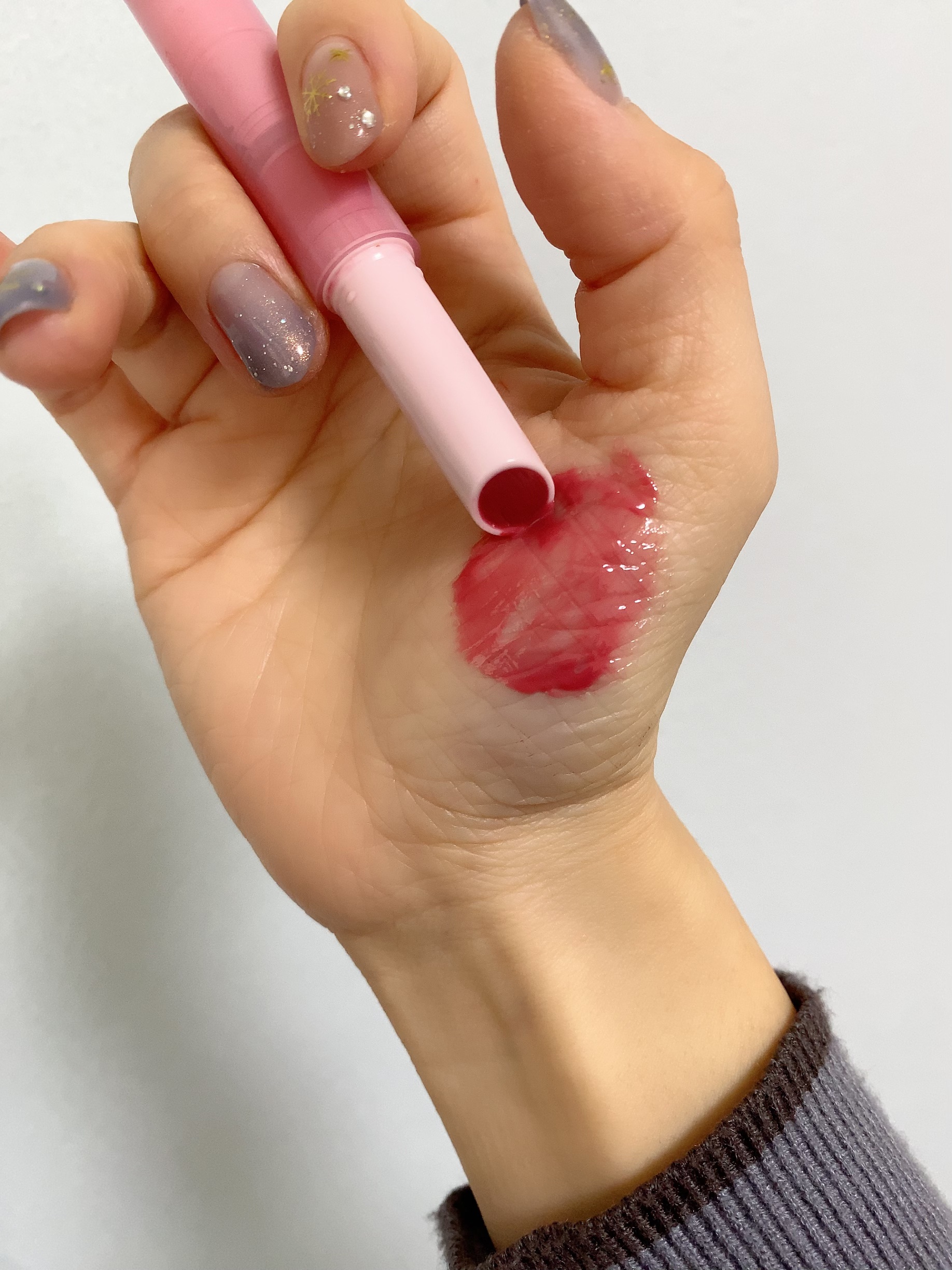 なんといってもさらっとした軽いテクスチャーで べたつかず重たくない。 光沢してツヤ感、ちゅるん感もとっても可愛い〜💖 ティントみたいな色持ちの良さもすごいよね😍👍 ココリングは オシャレなブラウンカラー ブラウンが濃すぎないから使いやすかった🤎 ハートリング もっとピンクかとおもいきや、私の唇にのせると 意外と深みのあるローズっぽいピンクに 2カラーとも発色良かった!!!! コロンとしたパケも可愛いよ〜💗 持ち運びにも🙆♀️