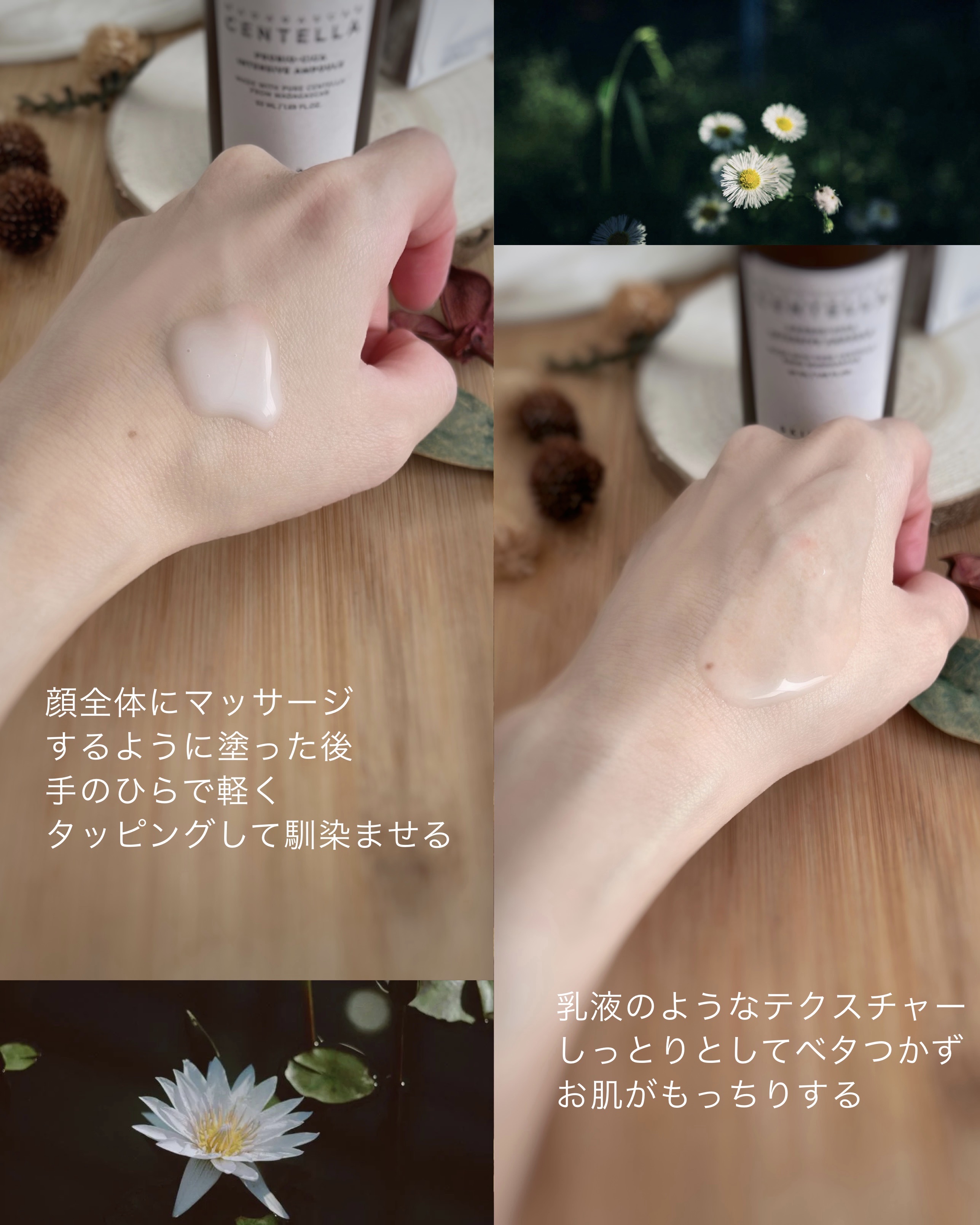 アップグレードされた発酵センテラ(ツボクサエキス)をそのまま詰め込んだ高濃縮美容液🤎 発酵センテラの栄養と効能を持つ高濃縮美容液が刺激を受けた肌を素早く鎮静! 肌土台となるバリア機能を強化してくれる✨ 密度のあるもっちりとしたアンプルがベタつきなくお肌に浸透🤎