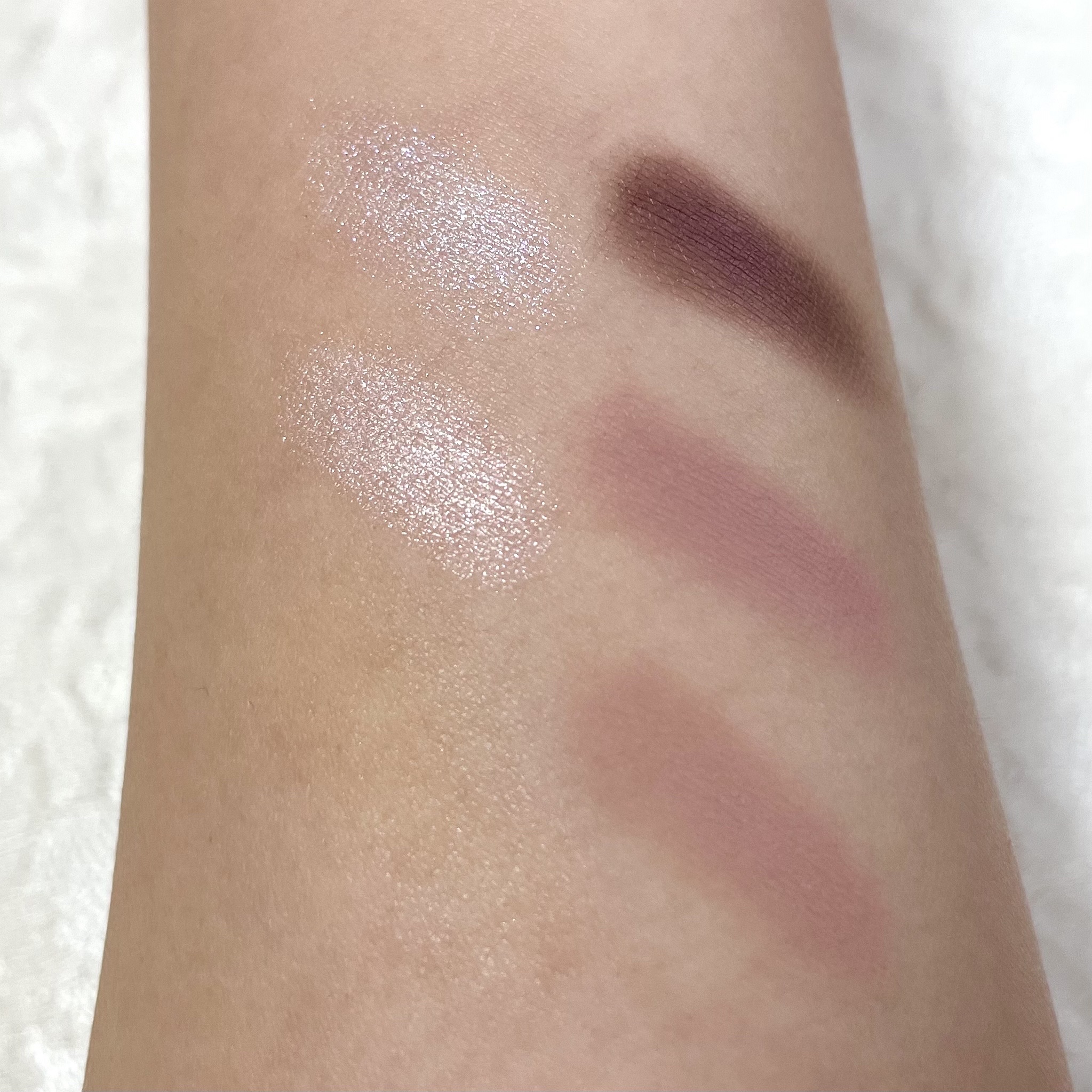 濃いいカラーに見えるけど、シアーで肌に馴染む! かわいい〜〜〜〜〜😍😍 ハイライト部分がラメはいっていて、そこだけハイライト代わりに使うも良し、そこでチークの縁をぼかすのも良し👌🏻 そのままブラシでスっととって、ふわっと頬にのせるだけでチーク完成🙆🏻♀️ わたしはミューテッドサマーと診断されたのですが、くすみと特に暗い色が得意!とのことでした。(2ndはディープウィンター) ドンピシャのカラー🥹🥹
