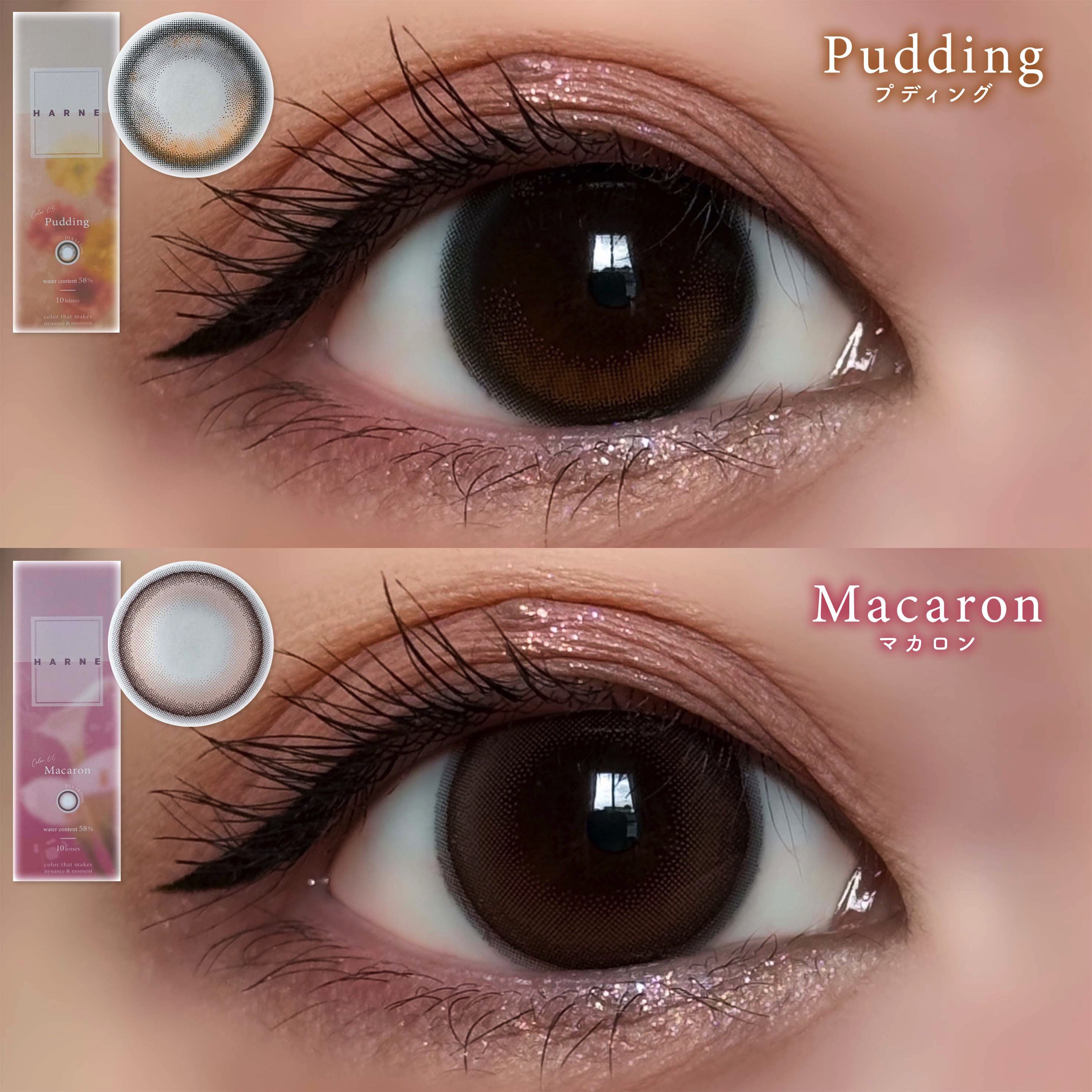 HARNE新色としてマカロンの色違いカラー フィナンシェ&チャイナブルーが登場したよ🪽 てんちむちゃんのこだわりポイントはズバリ色!浮いたり馴染みが悪くならないように色素薄い色を狙いすぎない程よいうっすらベージュ✨ 黒目がつけても派手見えしない絶妙なニュアンスブルーが綺麗すぎる💎
