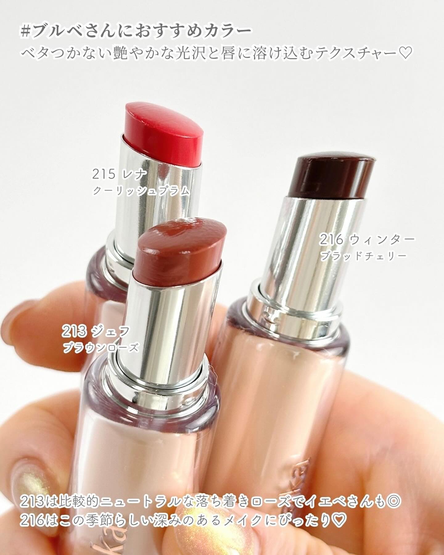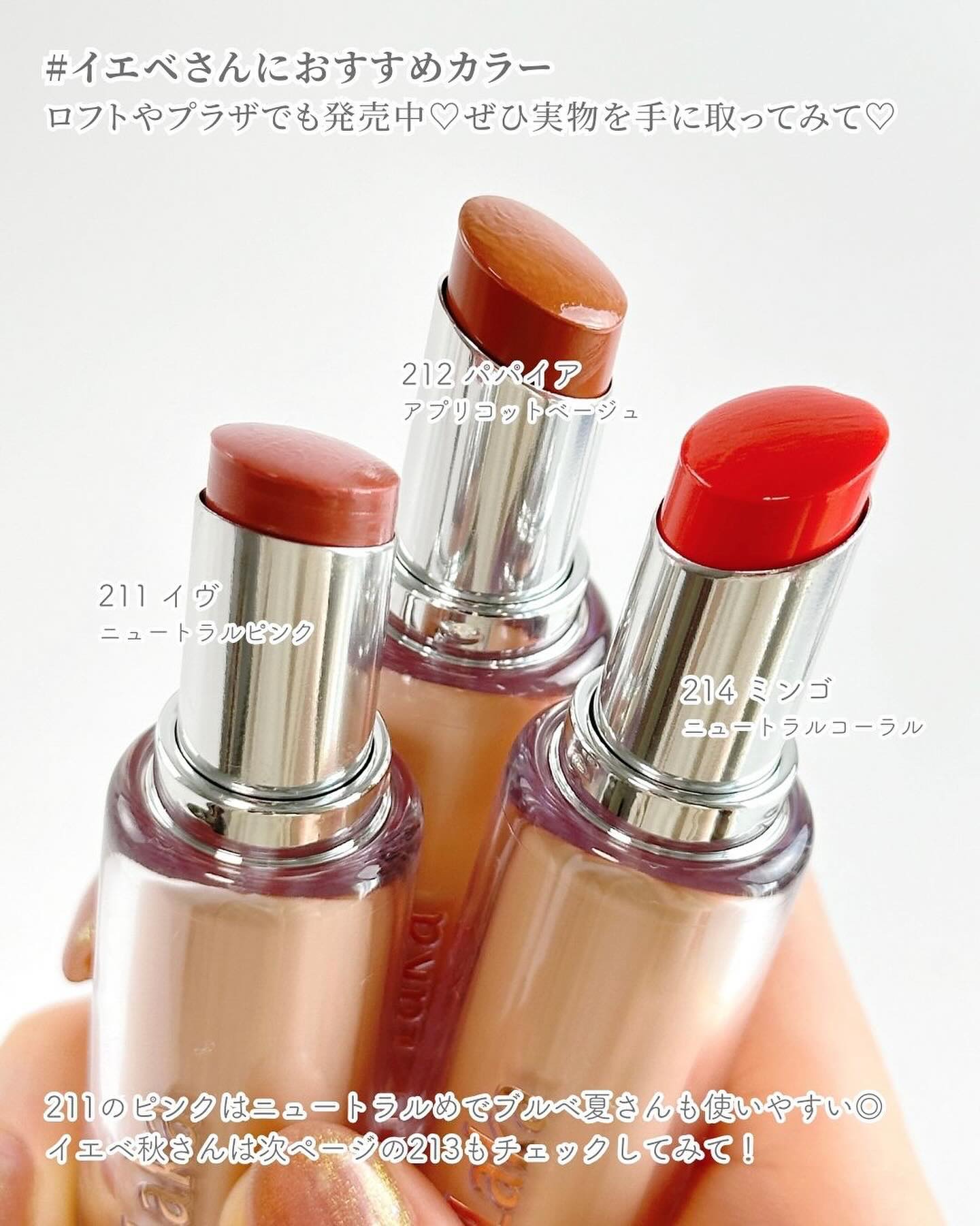 高保湿オイル成分を配合したうるうる・もっちり質感はまさに“水爆弾”🥺✨ 発色も◎です🙆♀️🤍 全7色展開、うち5色は日本のバラエティショップなどお店でも買えるようになっています✨