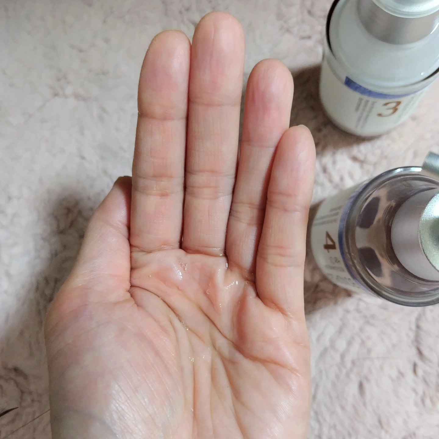 黄金色のトロミがあるテクスチャー🎶 ベタつきはなく、スーっと肌に馴染み、肌がもっちりした感じになりました🧏 プッシュ式で使いやすいし、肌の調子も良くなってすっかりお気に入りです😌
