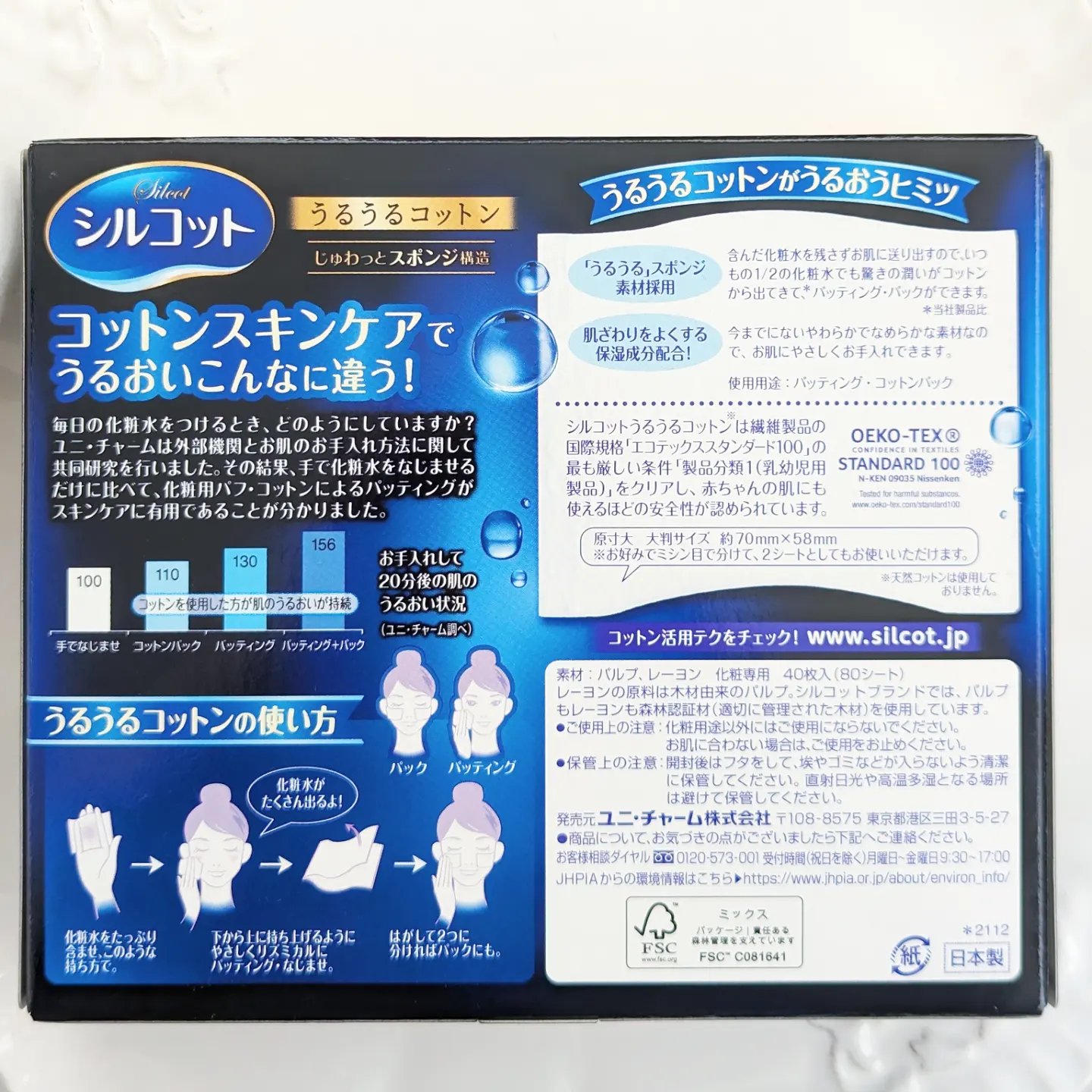 - ポイント①1/2の化粧水で驚くほどうるおう※1 じゅわっと染み出るスポンジ構造採用。化粧水の出てくる量がシルコットの2倍以上で、コットン本体に化粧水を殆ど残しません!※1当社製品比 ポイント②パッティングしても、はがしてもパックしても毛羽立たず、やわらか ポイント③2枚にはがせて目元にピタッと密着 2枚にはがしてパックできます。 目元にフィットしやすいカーブ形状です。