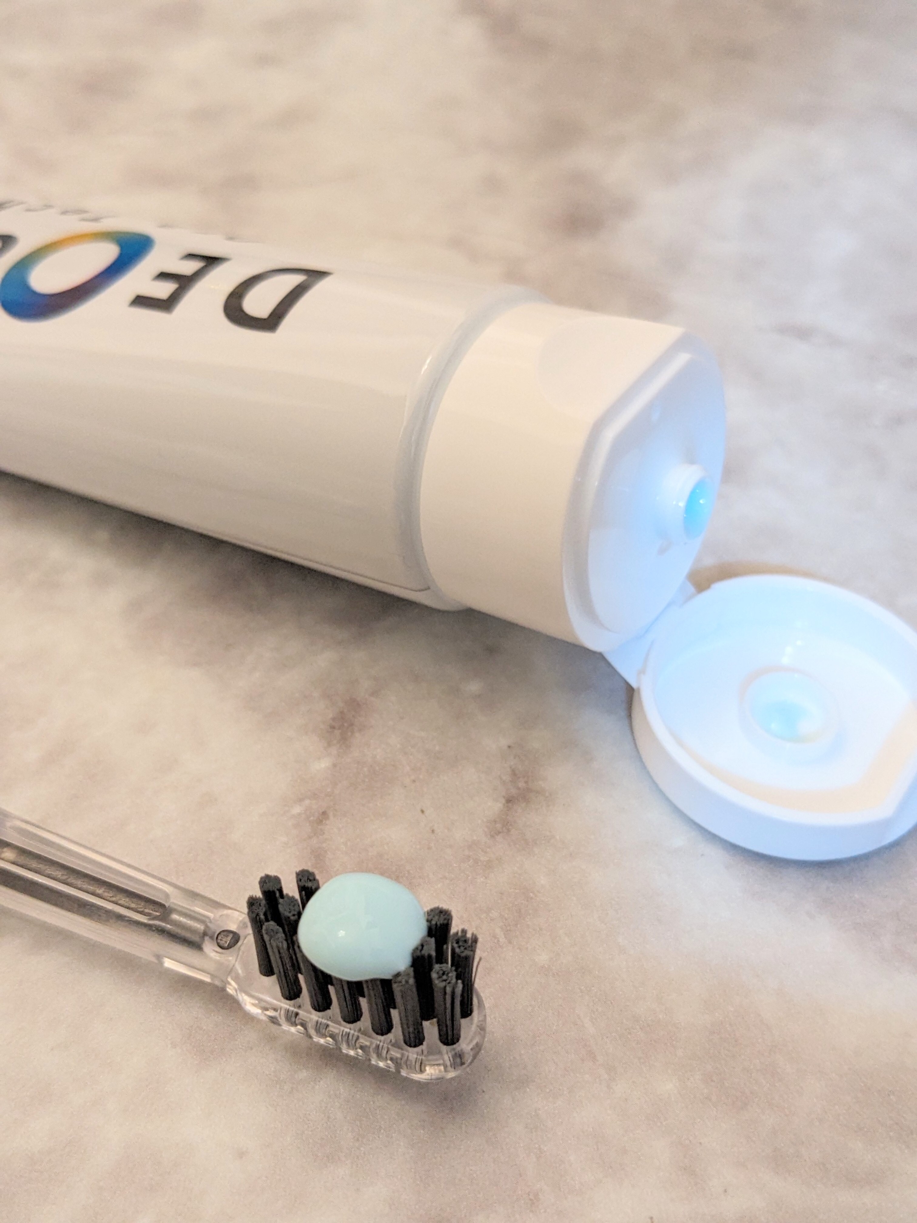 口臭ケアに特化した独自成分の清掃剤DEOGLAが配合されている歯磨き粉です。 香り成分でにおいをカバーする方法ではなく、銅の力を利用し口臭の原因である汚れをダイレクトに除去してくれるようです✨ 辛みの少ないマイルドなミント風味🌱香りでにおいをカバーするわけではないので使用後は、においが残るわけではなく口の中全体がスッキリ、さっぱりする感じです。