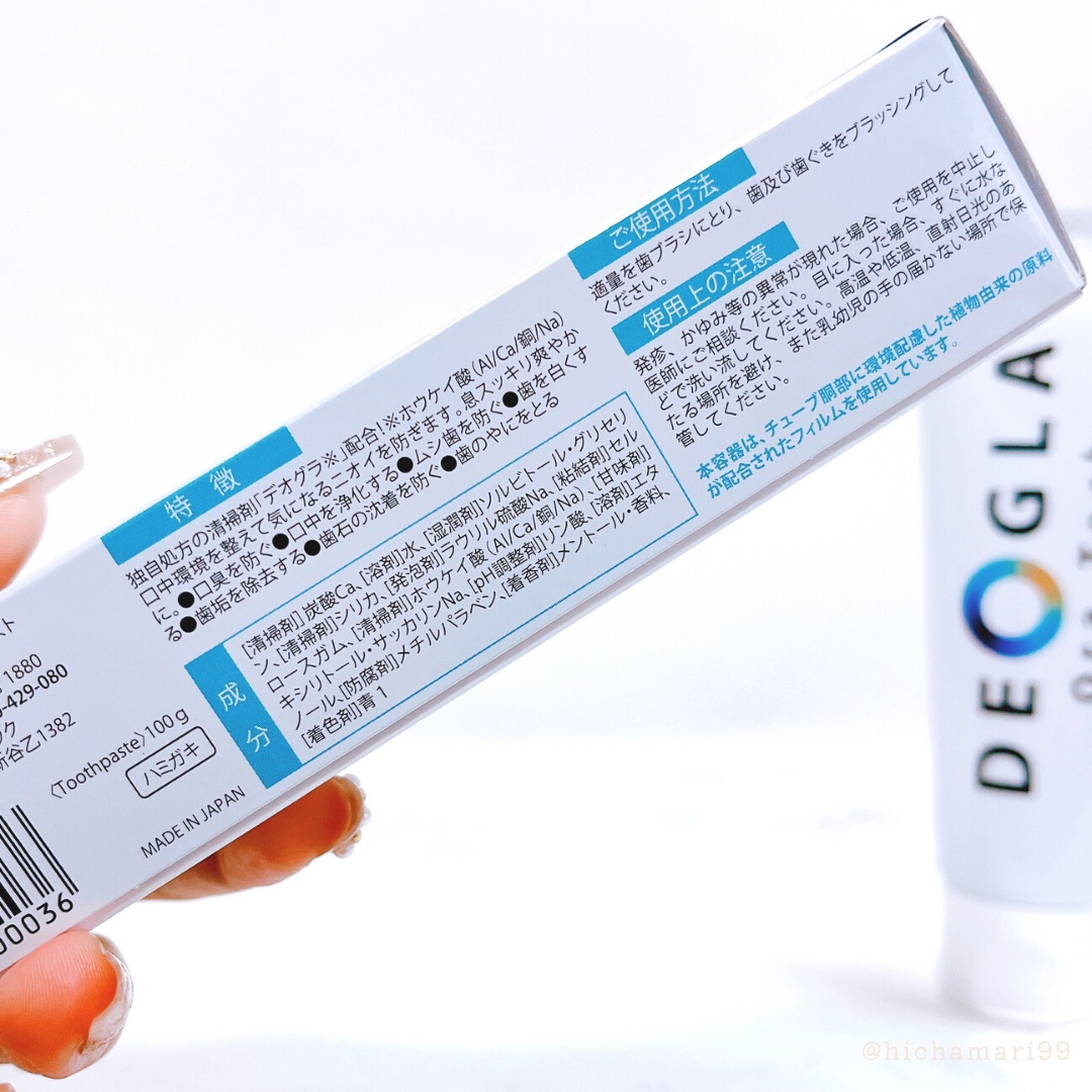 - \独自成分「DEOGLA®︎」(清掃剤)配合/ 創業200年を超える素材メーカーがつくる口臭ケアに特化した歯磨き粉! 製品の特長: 日常的に人が不快に感じる口臭の原因のひとつが、揮発性の臭い物質(メチルメルカプタンなど)の発生です。デオグラオーラテックでブラッシングすることで、原因*を除去。口臭を防いでスッキリした爽やかさが長く続きます。 *食べカスや歯垢など ▶2024.10.1より価格改定及びパッケージリニューアル 1,980円(税込) ▷▷▷ 1,540円(税込) 口臭に特化した処方はそのままに、さらにお求めやすくなりました ▶独自成分DEOGLA : 化粧品成分名称 ホウケイ酸(Al/Ca/銅/Na)
