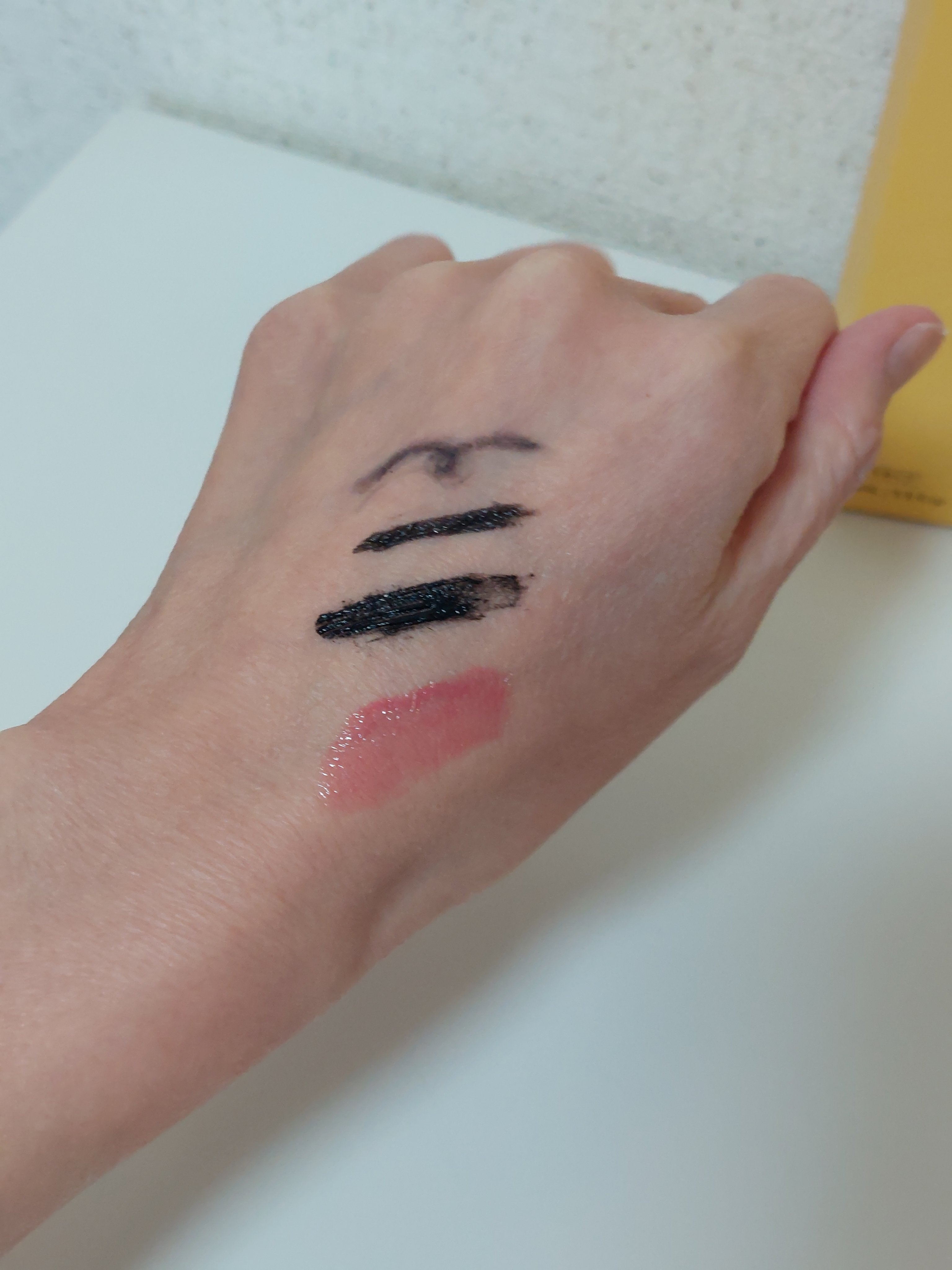 | ほんのり透け感のある黒いオイル。軽くみずみずしいテクスチャのため、 肌の上でするっと伸びる♪ | 詳細を見る | ||