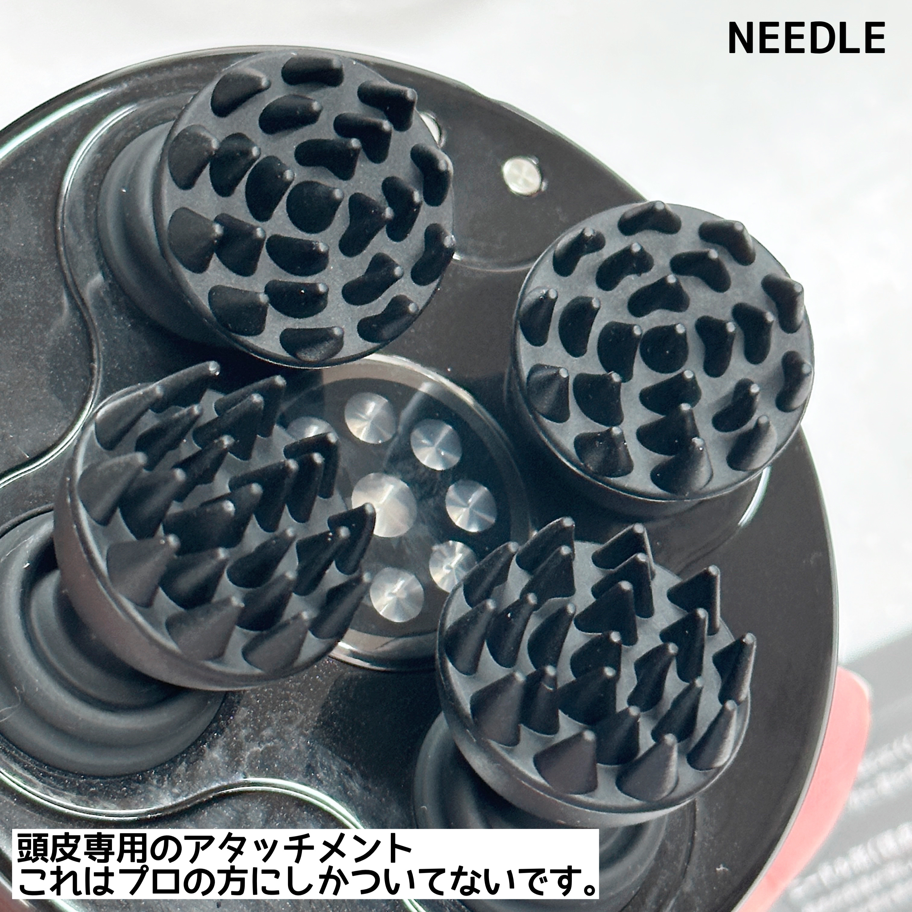 - 25万人※4以上が愛用した人気のヘッドスパシリーズから「頭皮ケア」「リフトケア※2」「フェイスケア」「ボディケア」すべてがグレードUP※1したヘッドスパが新登場。EMS刺激が180%UP※1しただけでなく、美肌を叶える赤色LEDも搭載。ニードルアタッチメントも加わって、より効果的な頭皮ケアを可能にしました。頭皮を健やかにし、美しさも引き出す。新しい電気針ヘッドスパの誕生です。 ※1:自社製品比 ※2:機器を上に向かって動かすこと。 ※3:肌に当てるとすぐに刺激を感じること。 ※4:MYTREX ヘッドスパシリーズ累計販売台数(自社調べ) *電気針:針のような電気刺激体感。