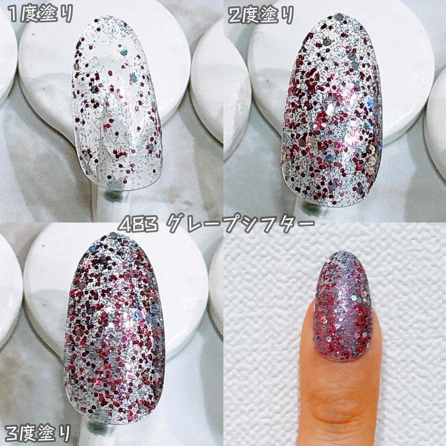 1本で3役、ベース&トップコートの成分が入った、1本でもちが良く驚きの輝きを放つ速乾性のネイルです。 そして乾くのが早くてびっくり!! ジップワインにグレープシフターを重ねてみたら、パーティーにぴったりのキラキラネイルに✨ 発色がいいところもお気に入りです🩷