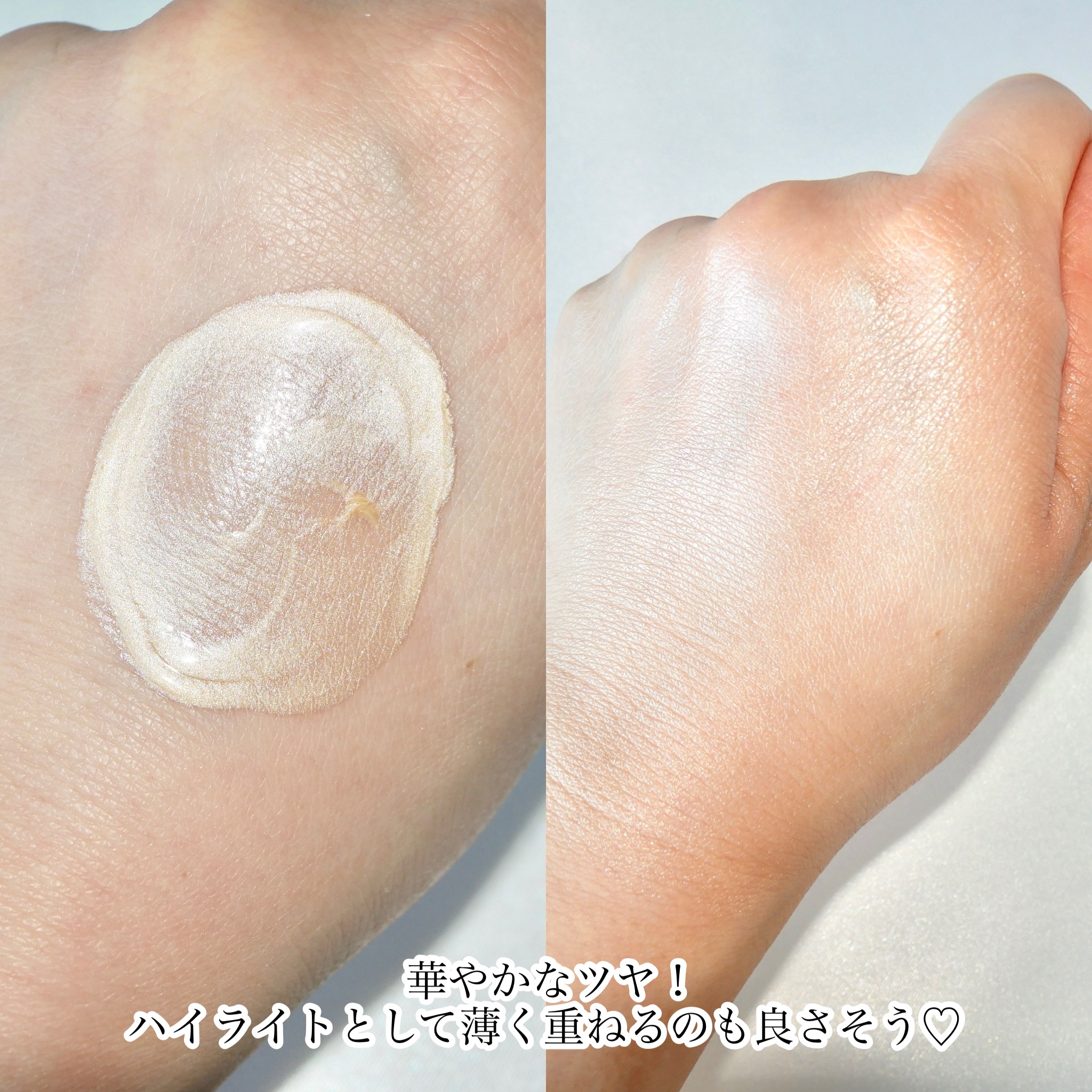 スキンケアとメイクアップを融合させた新感覚アイテム!肌にゴールドのツヤをもたらしつつ、自然なトーンアップ感で明るさもプラスしてくれます。 みずみずしい輝きでデイリー使いにも凄く良いです。保湿セラムとしても、化粧下地やハイライターとしてもいろんな使い方ができます。 とても軽いテクスチャーでベタつかず自然に馴染む感じが心地いいです。