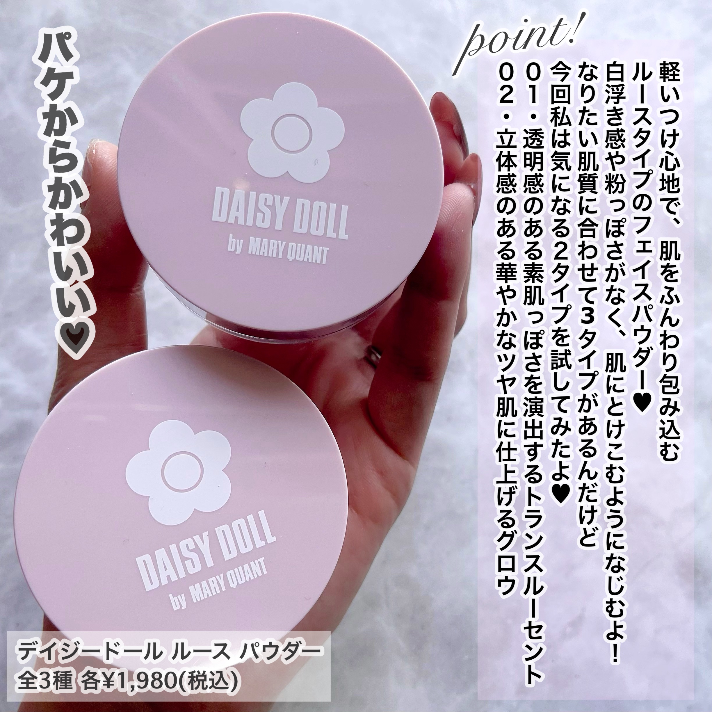 コスメブランドDAISYDOLLbyMARYQUANTMARYQUANTのセカンドブランドとして、遊び心あるファッショナブルなメイクアイテムを展開🌼今回は「シルキーフィックスパウダー」をご紹介💎☑メイクの仕上げやお直しに☑乾燥肌にも使いやすい...