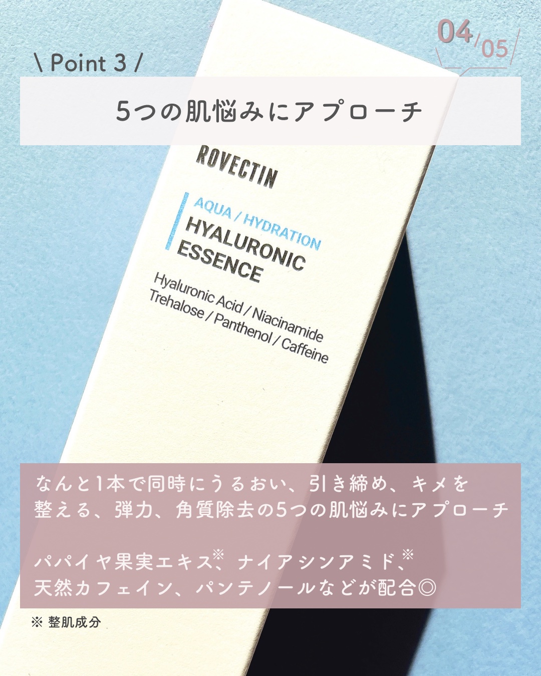 ひとことでいうと「とろとろとろみなのに、もろもろしない!」というすごいやつ 超低分子含む7種類のヒアルロン酸配合 美しさを求める現代女性の5つの肌悩みに 何度もいうけどその後のファンデにもろもろ出ない。これってなかなかすごいこと。