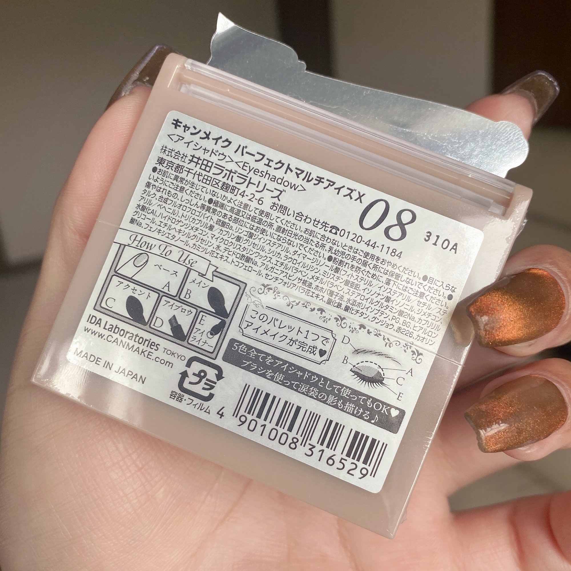 - アイメイク、これ1つで完了❤ アイシャドウ・アイブロウ・アイライナーとマルチに使える ラメなしマットな5色入りアイシャドウパレット 肌にとけ込むやわらかな陰影で、愛らしいナチュラルでか目に。 明度の違う同系色ブラウンで構成されたパレットなので、きれいなグラデーションが簡単に完成。 ナチュラルメイク派、学校・会社メイクにもぴったり! 撥水効果のあるオイルを配合することで、キレイが長持ちします。
