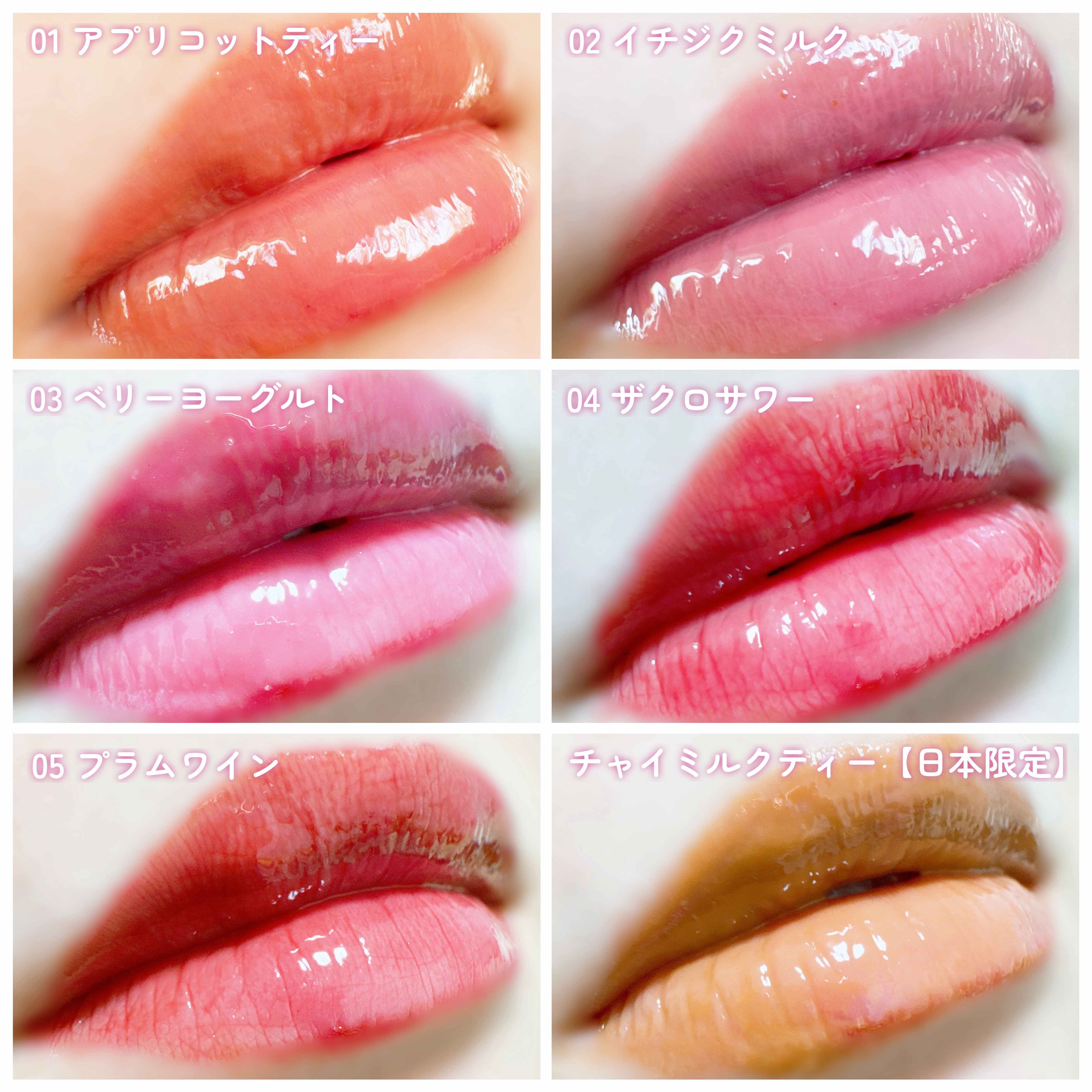 - <01 アプリコットティー> リンゴ酸ジイソステアリル、ダイマージリノール酸ダイマージリノレイルビス(ベヘニル/イソステアリル/フィトステリル)、ビスジグリセリルポリアシルアジペート-2、トリイソステアリン酸ポリグリセリル-2、水添ポリイソブテン、パラフィン、マイクロクリスタリンワックス、ウルシ果皮ロウ、ハチミツエキス、センチフォリアバラ花エキス、マンゴー果実エキス、カニナバラ果実エキス、アーモンド油、アルガニアスピノサ核油、アンズ核油、オリーブ果実油、シア脂、ツバキ種子油、ホホバ種子油、月見草油、BG、トリ(カプリル酸/カプリン酸)グリセリル、1,2-ヘキサンジオール、イソステアリン酸ソルビタン、酢酸トコフェロール、フェノキシエタノール、酸化鉄、酸化チタン、赤202、香料 <02 イチジクミルク> リンゴ酸ジイソステアリル、ダイマージリノール酸ダイマージリノレイルビス(ベヘニル/イソステアリル/フィトステリル)、ビスジグリセリルポリアシルアジペート-2、トリイソステアリン酸ポリグリセリル-2、水添ポリイソブテン、パラフィン、マイクロクリスタリンワックス、ウルシ果皮ロウ、ハチミツエキス、センチフォリアバラ花エキス、マンゴー果実エキス、カニナバラ果実エキス、アーモンド油、アルガニアスピノサ核油、シア脂、オリーブ果実油、アンズ核油、ツバキ種子油、ホホバ種子油、月見草油、BG、トリ(カプリル酸/カプリン酸)グリセリル、1,2-ヘキサンジオール、イソステアリン酸ソルビタン、酢酸トコフェロール、フェノキシエタノール、酸化鉄、酸化チタン、赤202、青1、香料 <03 ベリーヨーグルト> リンゴ酸ジイソステアリル、ダイマージリノール酸ダイマージリノレイルビス(ベヘニル/イソステアリル/フィトステリル)、ビスジグリセリルポリアシルアジペート-2、トリイソステアリン酸ポリグリセリル-2、水添ポリイソブテン、パラフィン、マイクロクリスタリンワックス、ウルシ果皮ロウ、ハチミツエキス、センチフォリアバラ花エキス、マンゴー果実エキス、カニナバラ果実エキス、アーモンド油、アルガニアスピノサ核油、シア脂、オリーブ果実油、アンズ核油、ツバキ種子油、ホホバ種子油、月見草油、BG、トリ(カプリル酸/カプリン酸)グリセリル、1,2-ヘキサンジオール、イソステアリン酸ソルビタン、酢酸トコフェロール、フェノキシエタノール、酸化鉄、酸化チタン、赤202、黄5、香料 <04 ザクロサワー> リンゴ酸ジイソステアリル、ダイマージリノール酸ダイマージリノレイルビス(ベヘニル/イソステアリル/フィトステリル)、ビスジグリセリルポリアシルアジペート-2、トリイソステアリン酸ポリグリセリル-2、水添ポリイソブテン、パラフィン、マイクロクリスタリンワックス、ウルシ果皮ロウ、ハチミツエキス、センチフォリアバラ花エキス、マンゴー果実エキス、カニナバラ果実エキス、アーモンド油、アルガニアスピノサ核油、シア脂、オリーブ果実油、アンズ核油、ツバキ種子油、ホホバ種子油、月見草油、BG、トリ(カプリル酸/カプリン酸)グリセリル、1,2-ヘキサンジオール、イソステアリン酸ソルビタン、酢酸トコフェロール、フェノキシエタノール、黄5、赤202、香料 <05 プラムワイン> リンゴ酸ジイソステアリル、ダイマージリノール酸ダイマージリノレイルビス(ベヘニル/イソステアリル/フィトステリル)、ビスジグリセリルポリアシルアジペート-2、トリイソステアリン酸ポリグリセリル-2、水添ポリイソブテン、パラフィン、マイクロクリスタリンワックス、ウルシ果皮ロウ、ハチミツエキス、センチフォリアバラ花エキス、マンゴー果実エキス、カニナバラ果実エキス、アーモンド油、アルガニアスピノサ核油、シア脂、オリーブ果実油、アンズ核油、ツバキ種子油、ホホバ種子油、月見草油、BG、トリ(カプリル酸/カプリン酸)グリセリル、1,2-ヘキサンジオール、イソステアリン酸ソルビタン、酢酸トコフェロール、フェノキシエタノール、酸化鉄、赤202、青1、香料 <06 チャイミルクティー> リンゴ酸ジイソステアリル、ダイマージリノール酸ダイマージリノレイルビス(ベヘニル/イソステアリル/フィトステリル)、ビスジグリセリルポリアシルアジペート-2、トリイソステアリン酸ポリグリセリル-2、水添ポリイソブテン、パラフィン、マイクロクリスタリンワックス、ハチミツエキス、センチフォリアバラ花エキス、マンゴー果実エキス、カニナバラ果実エキス、アーモンド油、アルガニアスピノサ核油、シア脂、オリーブ果実油、アンズ核油、ツバキ種子油、ホホバ種子油、月見草油、BG、トリ(カプリル酸/カプリン酸)グリセリル、水、1,2-ヘキサンジオール、イソステアリン酸ソルビタン、BHT、酢酸トコフェロール、フェノキシエタノール、酸化チタン、酸化鉄、香料 <21 ダーティチョコ> リンゴ酸ジイソステアリル、ダイマージリノール酸ダイマージリノレイルビス(ベヘニル/イソステアリル/フィトステリル)、ビスジグリセリルポリアシル