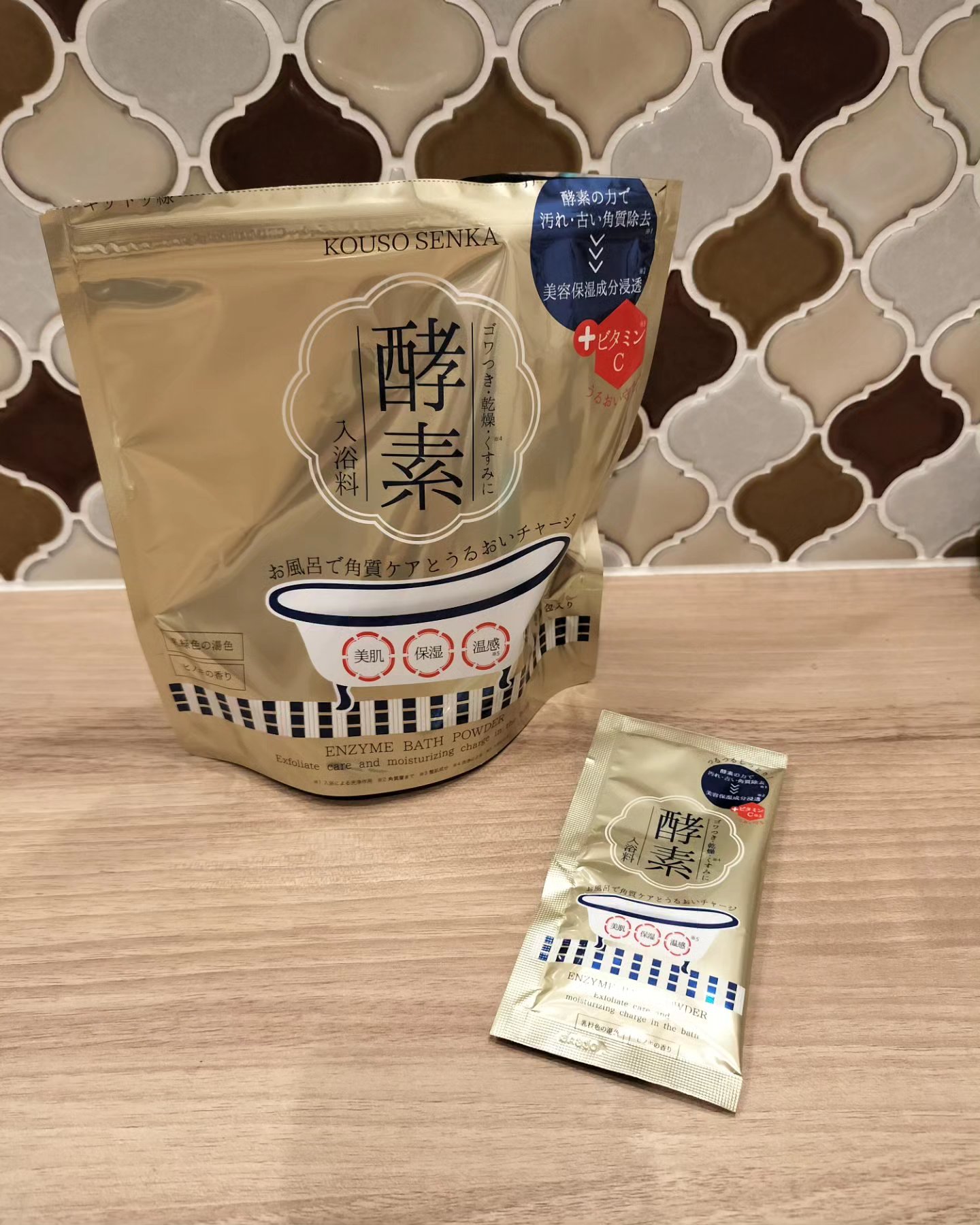 - 入浴で角質ケアとうるおいチャージができる酵素配合の入浴料。 3種類の酵素(*1)のパワーでゴシゴシ洗いしなくても汚れや古くなった角質を優しくケアし、摩擦の少ない使い心地&手の届かないところもつるんと清潔な素肌に。 さらにお肌の潤いを守るビタミンC(*2)、厳選したこだわりの美容保湿成分を配合。 まるっと全身メンテナンスで明るい(*3)つるすべ肌に。 *1洗浄成分 *2整肌成分 *3汚れや古い角質の除去による肌印象