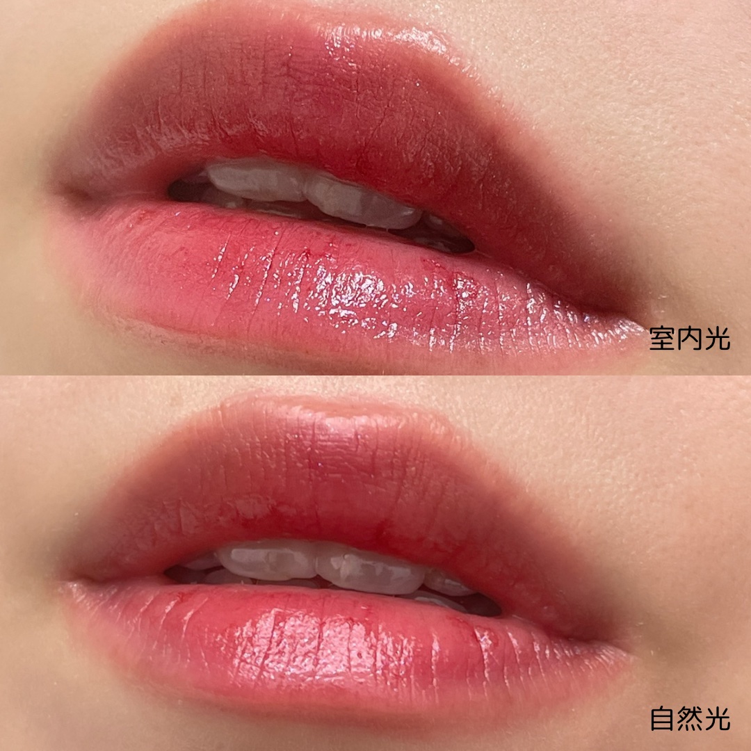 多幸感あふれるクリアなコーラル🩷 特に時間が経つと蛍光感がでてきちゃう。 THEピンクのリップを求めている人にピッタリ! ティッシュオフしても若干色は残ってる! おすすめの塗り方は、いつもよりも少し濃いめに塗ってから、ティッシュオフ!