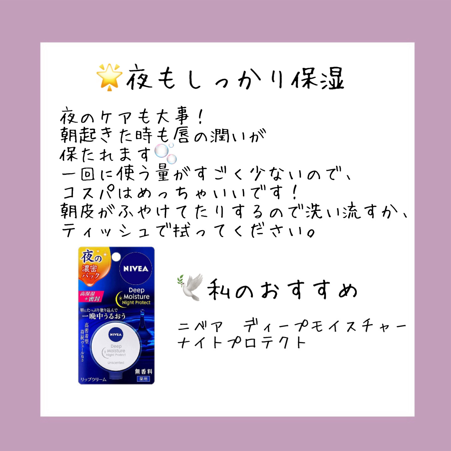 ニベア ディープモイスチャーナイトプロテクト 無香料 | 714円 |