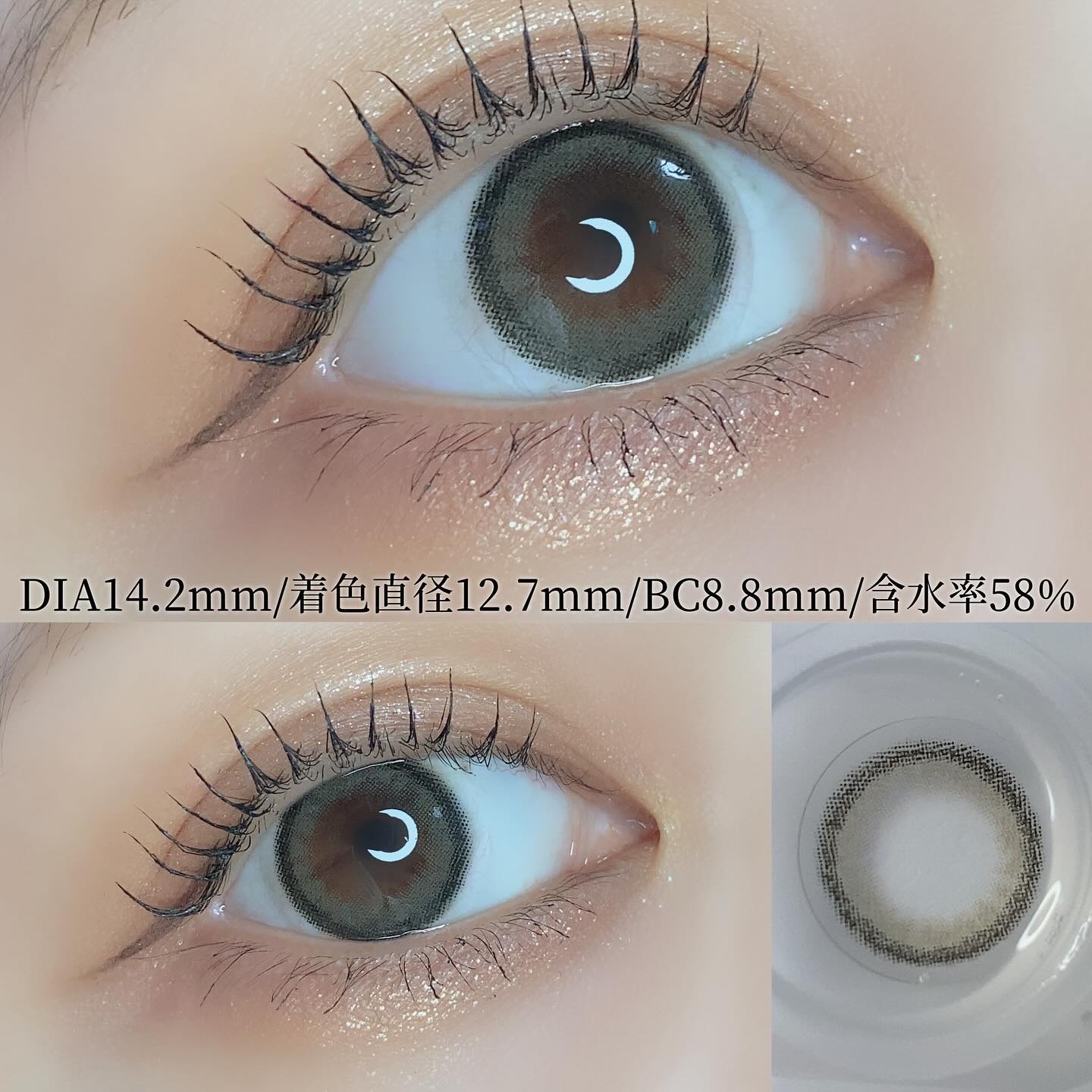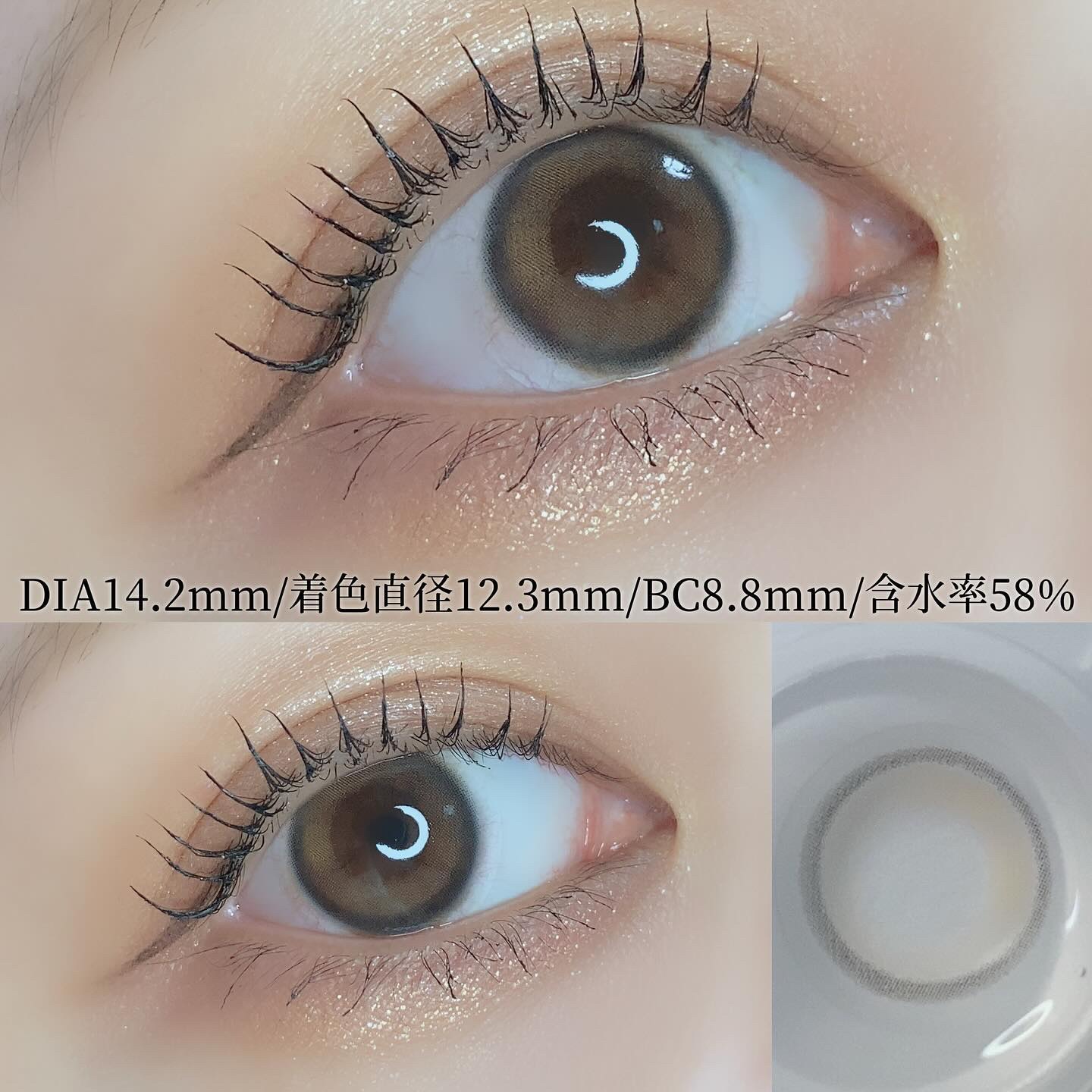新色2色は11月1日からQoo10先行発売🩰 ¥1,694がカートクーポンも使うと¥900で買えるようになっててお得すぎる🫶🏻 🩶 Ether Gray⌇エーテルグレー 初心者さんでも使いやすい水光グレーカラコン 見た目はブルーよりのグレーだけど黒目の私はつけると馴染んで使いやすかった🐈⬛ 🧡 Caramel Light⌇キャラメルライト 王道ブラウンが瞳になじみ、細フチが儚げでピュアさを演出する水光ブラウンカラコン
