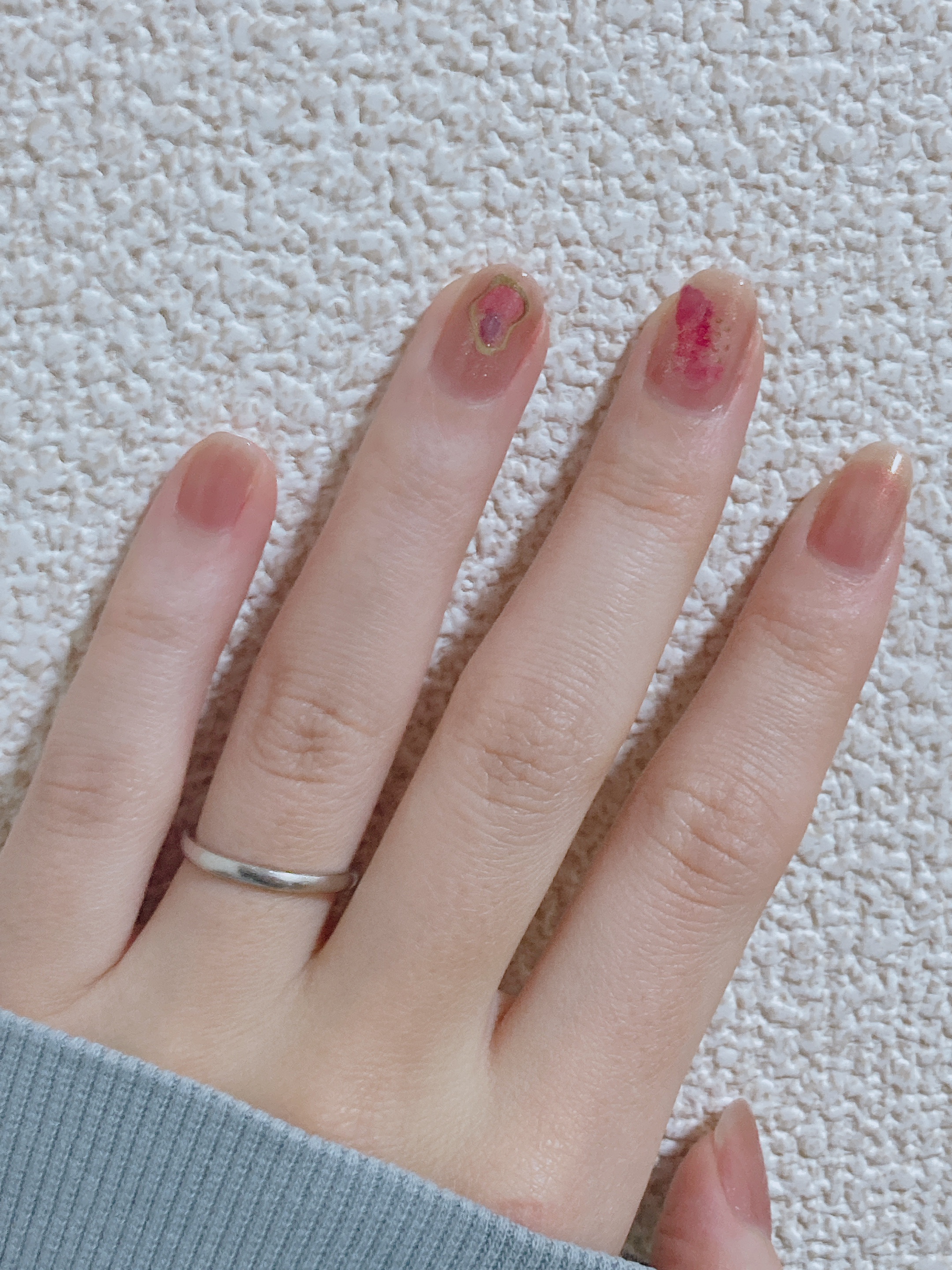 excelのネイルポリッシュを初めて買ってみました! ムラにならずにとてもぬりやすい🙌 そしてトワイライトラバーの色と細かいラメの感じが本当にきれいです!! 今回はゆめかわゼリーとハートのシールを合わせて可愛い感じにしました♡