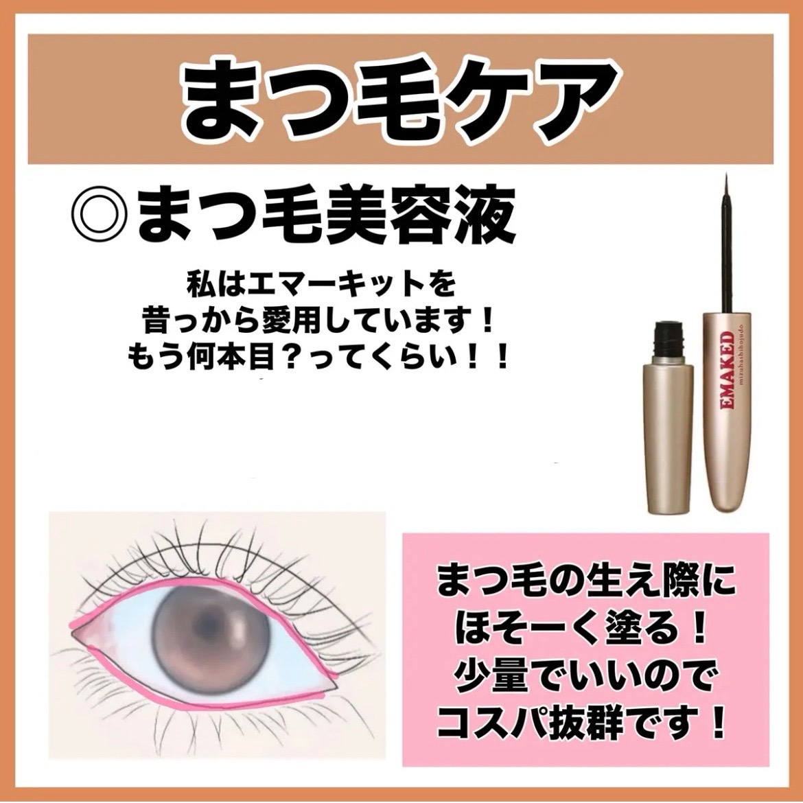 まつ毛美容液は、とにかくエマーキッドを使ってから一気に長さが伸びました❣️ 一ヶ月くらいしてすぐ効果がわかります🥲 まつ毛にハリこしがでて、前よりもまつ毛が太く濃くなりました❣️ 長さがあるだけでも貧相にみえてしまうので、まつ毛に太さを出すことも大切です😌 ヒロインメイクのマスカラは、本当にずっと愛用しています❣️ なんといっても、カール力、そしてまつ毛も伸びて、マスカラがボロボロ落ちてきません!