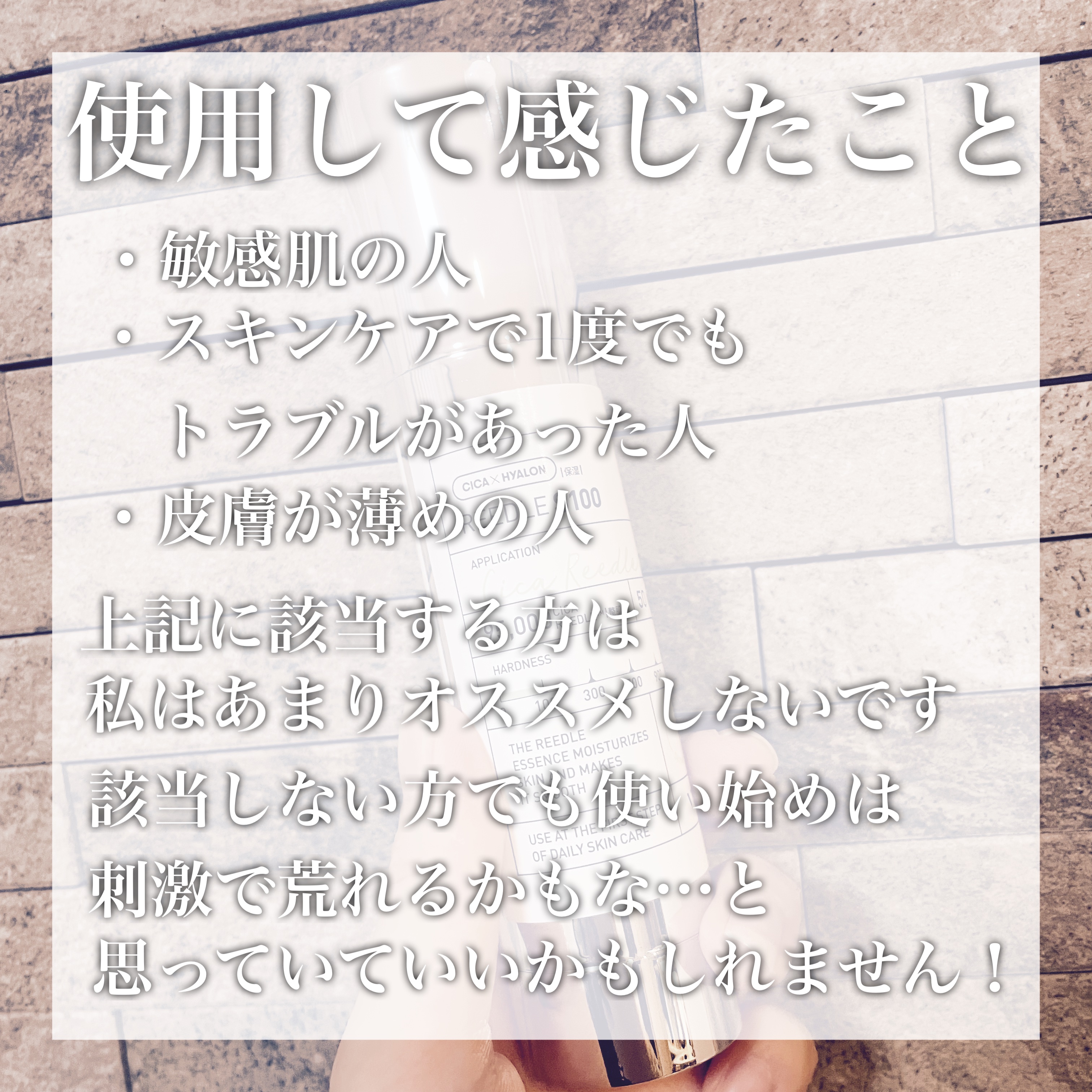 肌荒れを起こしてしまった・何かしら良い方向にいかなかった 肌荒れといっても赤みが出たりはしなかったのですが、主にニキビがいつも出ないところに出てきたりいつもの所が酷くなったり…という感じです😅 鍼成分が入っているので、最初は肌荒れするか〜なんて思っててある程度は一応覚悟していました🙌 ただ、長く使っていても毛穴の範囲が引き締まる感じはしなかったし、リードルショット使用後の美容液などの入りが良くなってすごく肌調子が良くなった…というのも感じませんでした🤔
