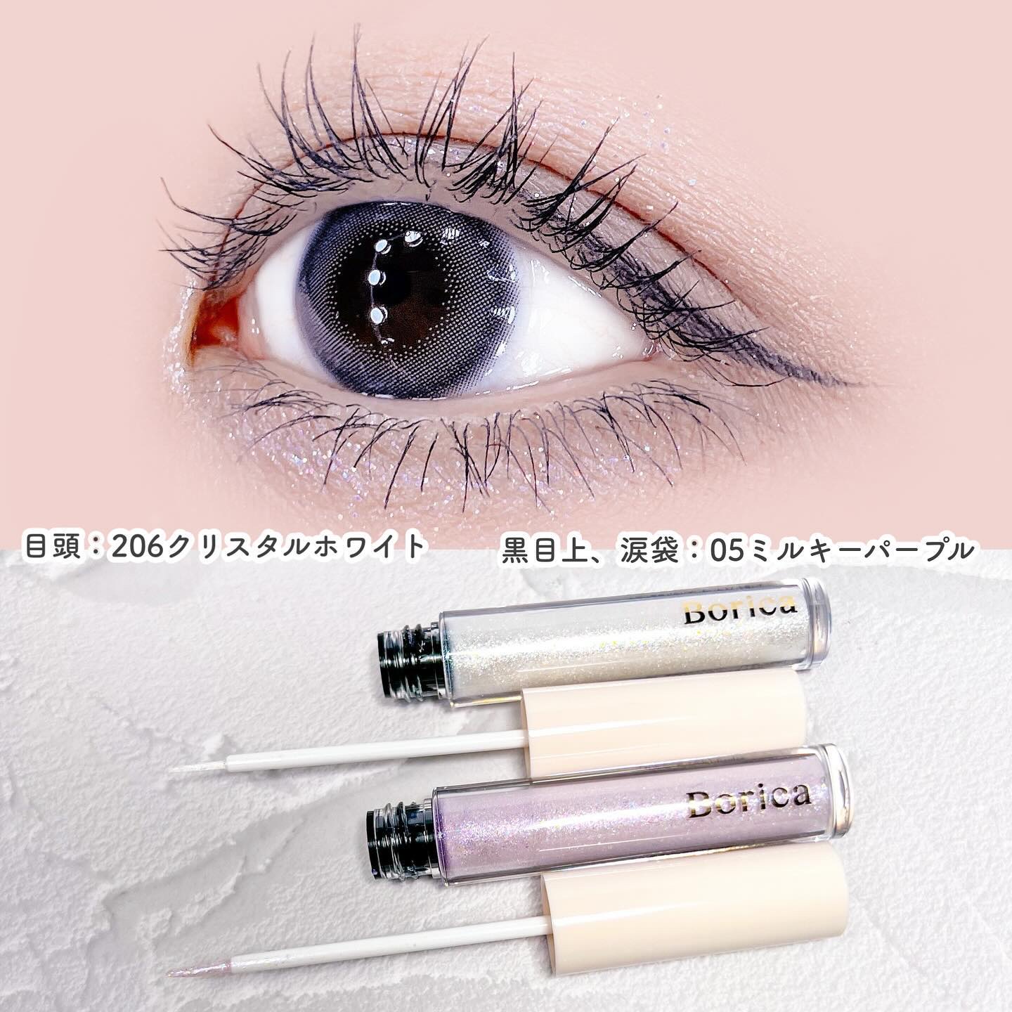 細かいラメが引けるライナーになります。細めの筆でのせやすいのもお気に入りポイント。 グリッターほどやりすぎ感がなく、何も塗っていない時より自然な存在感が出るので、 美容液成分が配合されているようです。確かに一日中つけていても乾燥は感じにくかったです。