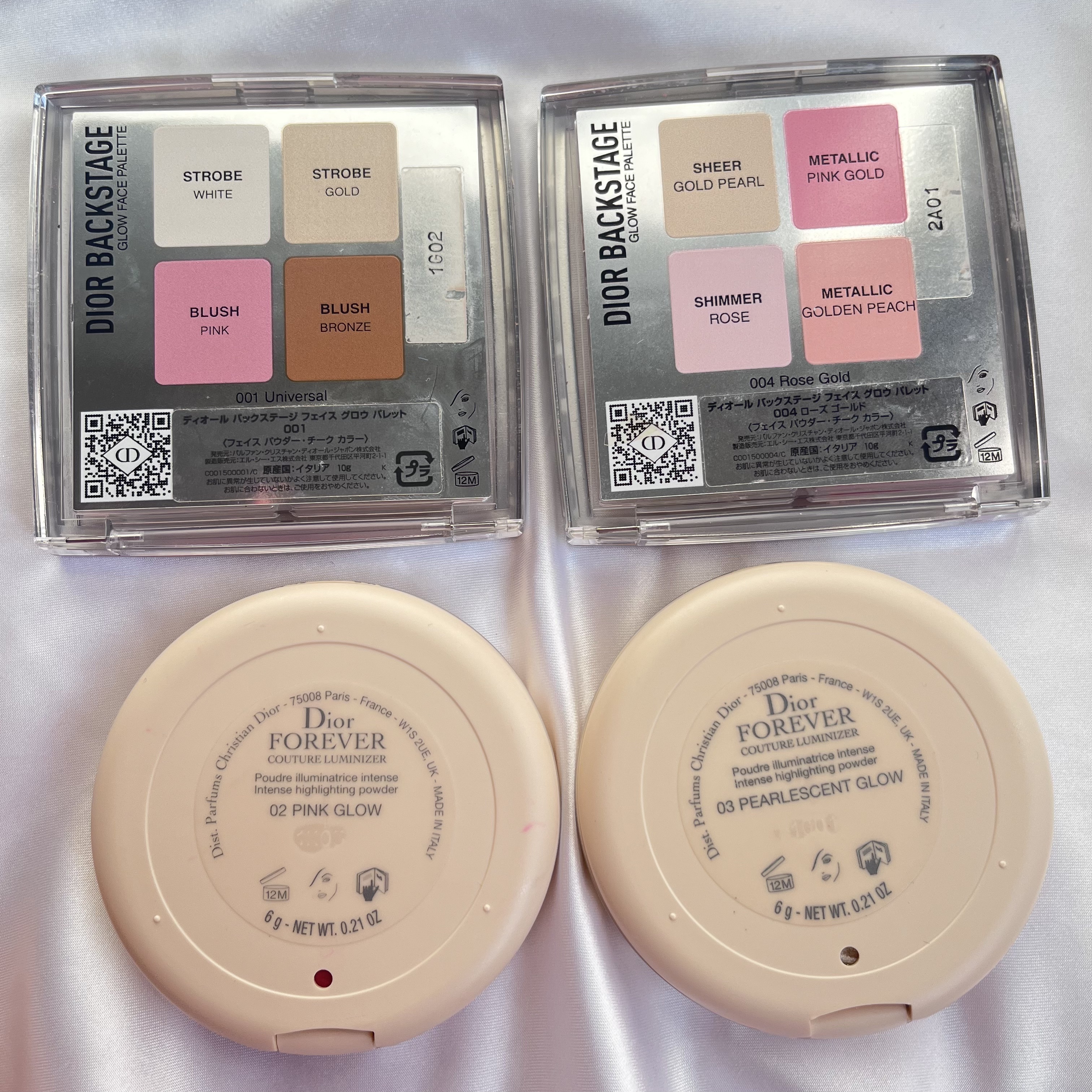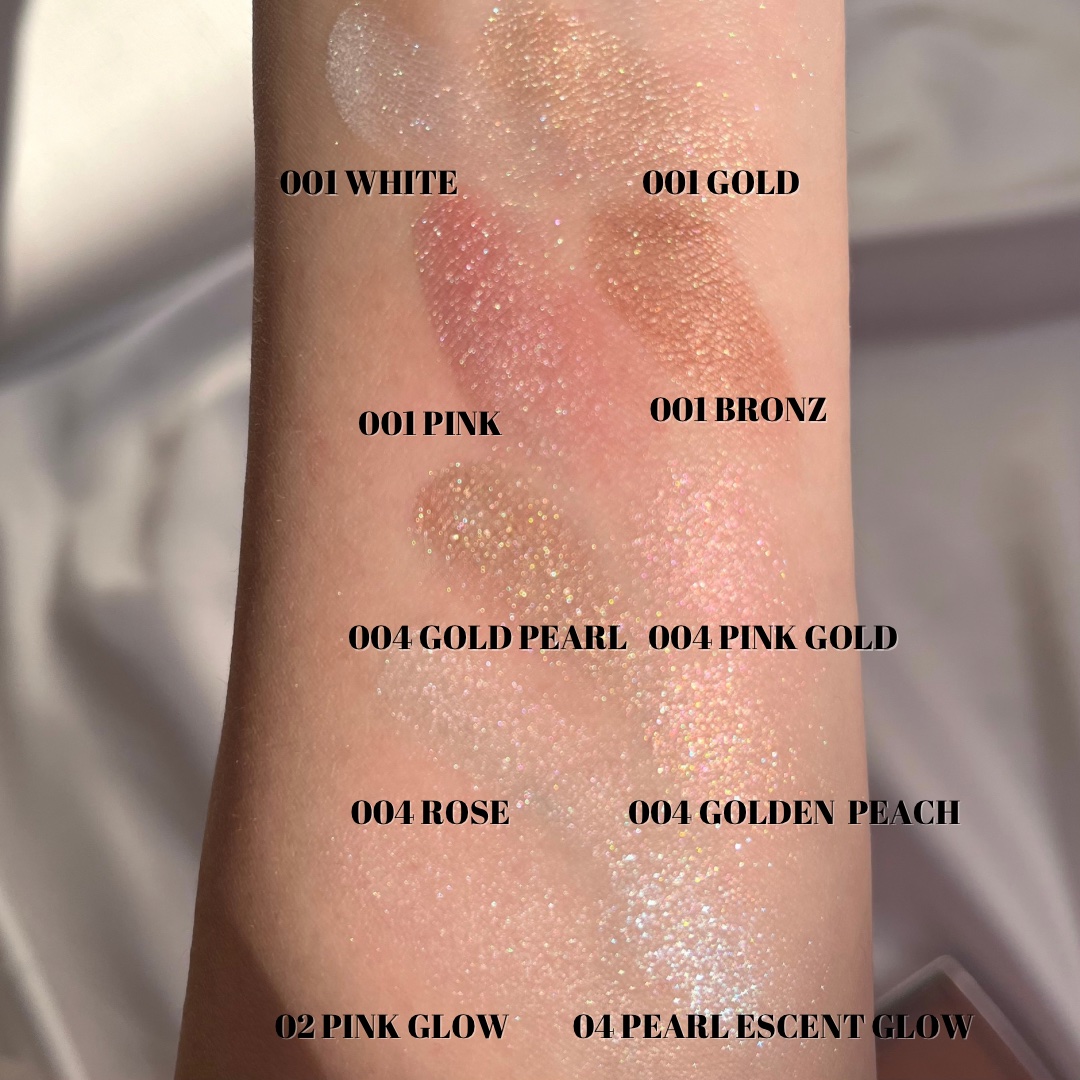 ⭐︎パーフェクトダイアリーシルバーパールキラキラ!!ひと塗りでしっかり付く✨ ⭐︎Diorプルーパールでキラキラ✨こちらも粉質良くてひと塗りでしっかり付く!写真で見ると1番キラキラに見えました。大きいパールと小さいパールのどちらもある感じでさすがDior👏 ⭐︎fwee粉が硬めで付きが他に比べて弱く感じました💦パールがシルバー系で見た目はパーフェクトダイアリーに似ていたので個人的にはこれよりもパーフェクトダイアリーの方がおすすめ! MACこれは細かいパールぎっしりの面で光る感じ✨パープルっぽく光るのでピンク系のメイクと合いそう♡