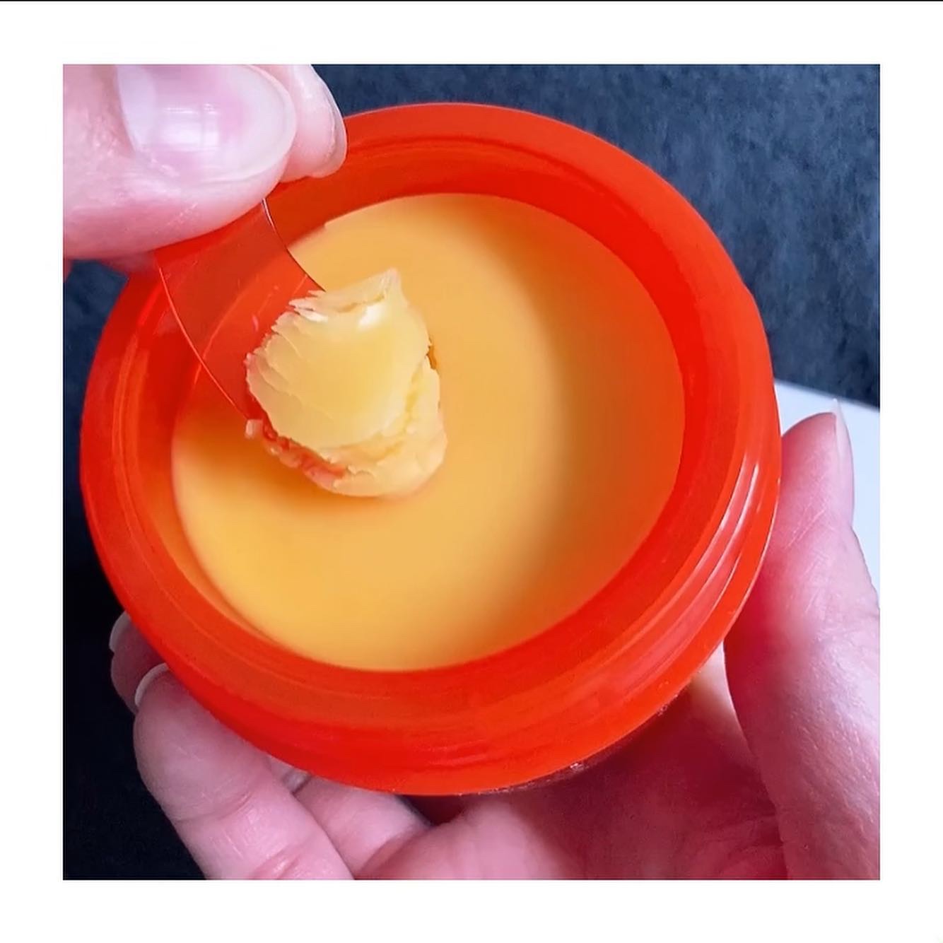 ✤ 79%のココナッツ由来オイルがメイクや老廃物を残さず、毛穴の奥までクレンジングしてくれる。 ✤ 5つの保湿成分配合で乾燥ケアし保湿してくれる✨️ オレンジの花・ひまわりの種オイルなど自然由来の保湿成分が、洗い流した後もしっとり仕上げてくれる。 ✤ エイプリルスキン独自のW抗菌成分カロテンIPMP™ が、肌トラブルの原因になる皮脂をコントロールしてくれる。 テクスチャーは、キレイなオレンジ色でスパチュラの入りやすい柔らかいバームで体温に溶けやすく固形が残りにくい。 香りは、柑橘系なのかな?! よく嗅ぐとマニキュアのような〜かんじもするんだけど違うかな?🥹笑 洗い上がりは、しっとり感が残って乾燥やツッパリ感はありませんでした☺️! スパチュラも中蓋の上に置いて収納が出来るので無くす心配は、ありません🤝🏻 蓋のタイプもパカって開くクレンジングバームのよくある容器ではなく、クリームみたいな容器で回して開けるタイプでした😮