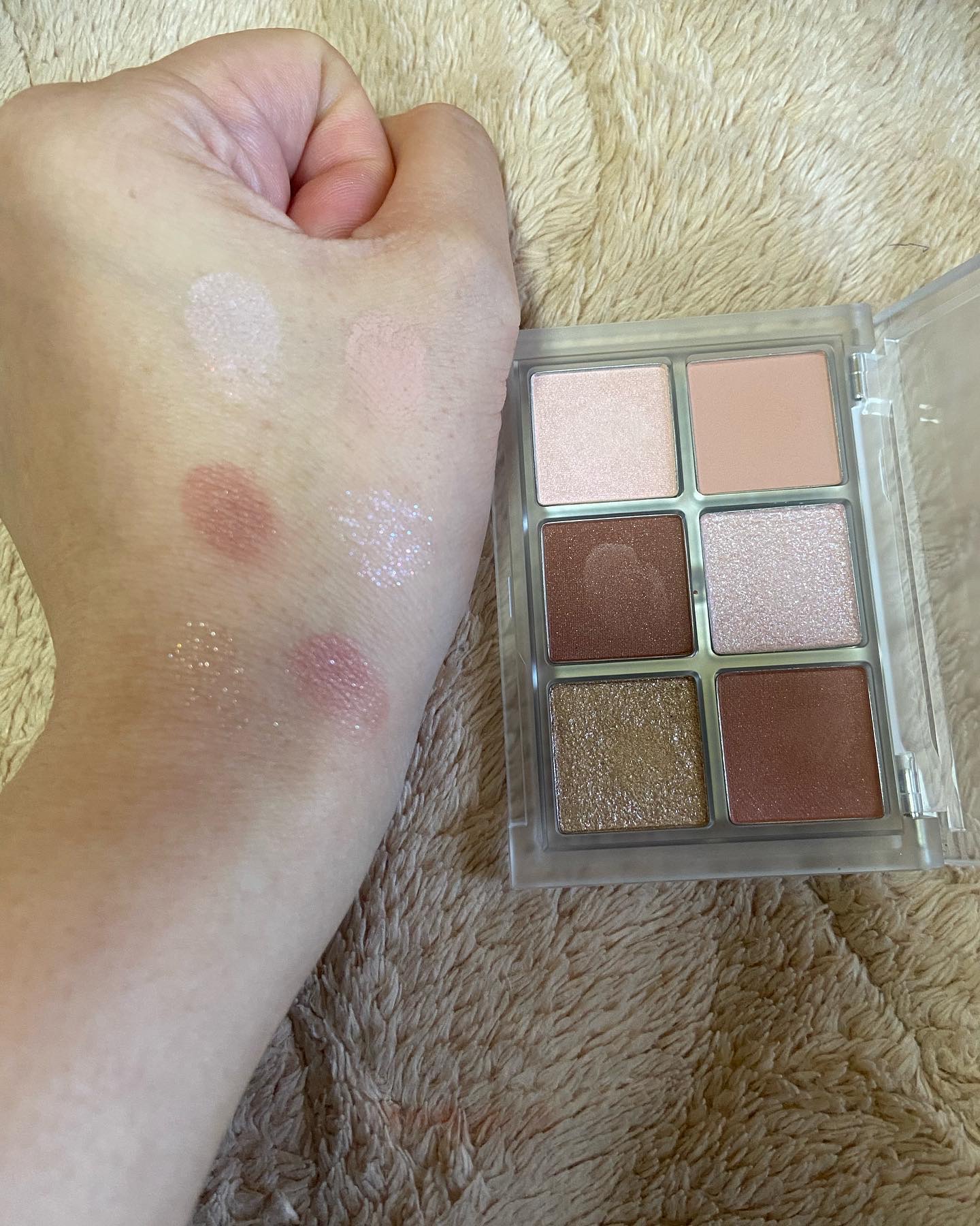 がま口みたいで可愛い( ´,,•ω•,,`)♡ メインとなる色が2色入ってるから使いやすいし、ラメも2色入ってます (๑╹ᆺ╹) 1番左の色だけ使い道分からないけど… アイラインの上から重ねたりしたらいいのかな笑