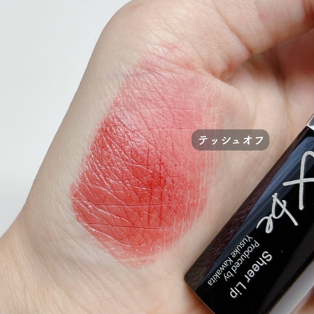塗った瞬間、とろけるような塗り心地🫶 重ねていく事に色付いて、好みの色に調節できて、粘膜カラーなのでどんなメイクにも合うと思う◎ ティッシュオフでかなり持っていかれますね💦
