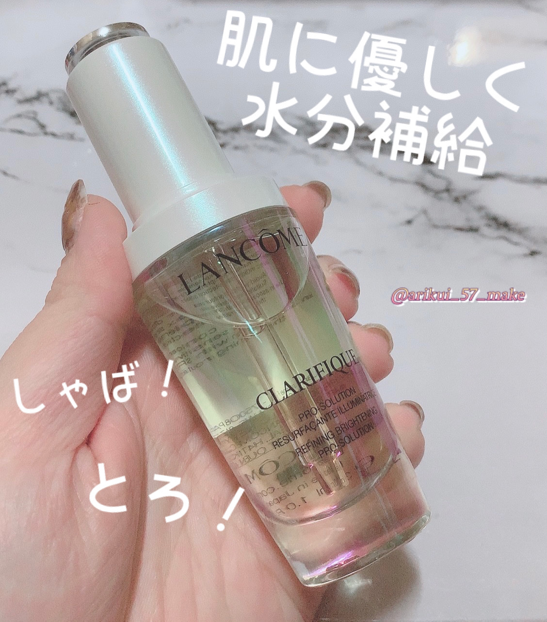 - 【医薬部外品】 先進美容ウォーターピーリング着想。 新世代*1「6QDx」美白*2美容液。 6つの承認効能をもつ医薬部外品。みずみずしく澄み渡る透明感へ。 先進美容「ウォーターピーリング」着想で、 目指したのは、肌に優しく水分補給しながら、使うたび感じる輝き。 シミ対策にとどまらず。360°透明肌*3へ。 6つの承認効能をもつ医薬部外品。 シミやくすみ*4が晴れたような、澄みわたる透明感を。 厳選成分を配合したブライトニングコンプレックス。 「PHA」*5肌に優しく水分補給しながら角質ケアでみずみずしくやわらかい肌へ。 「ナイアシンアミド」(美白有効成分)メラニンの生成をブロックし、シミ・そばかすを防ぐ。 「ブナエキス」*6クラリフィック共通成分で肌をなめらかに整える。 6つの効果を1本で。 -シミ・そばかすを防ぐ*7 -肌にうるおいを与える -肌をなめらかに整える -にきびを防ぐ -油分バランスを整える -皮膚を保護する ・日本開発フォーミュラ ・敏感肌でも使える*8 ・アジア人の肌テスト済み*8 *1 ランコムとして *2 6QDx: 6つの承認効能をもつ医薬部外品 (メラニンの生成を抑え、しみ、そばかすを防ぐ/にきびを防ぐ/油性肌/肌を整える/皮膚にうるおいを与える/皮膚を保護する) 美白:メラニンの生成を抑え、しみ、そばかすを防ぐ *3 透明感のある肌のこと *4 乾燥による *5 グルコノデルタラクトン(保湿成分) *6 ブナエキス(整肌成分・保湿成分) *7 メラニンの生成を抑え、しみ、そばかすを防ぐ *8 すべての人に肌トラブルが起きないわけではありません