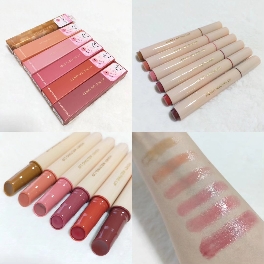 ネイチャーリパブリック ハニーメルティングリップ 01 アプリコットティー 02 イチジクミルク 03 ベリーヨーグルト 04 ザクロサワー 05 プラムワイン 06 チャイミルクティー #韓国コスメ #韓国リップ #ツヤリップ #冬顔メイクテクニック