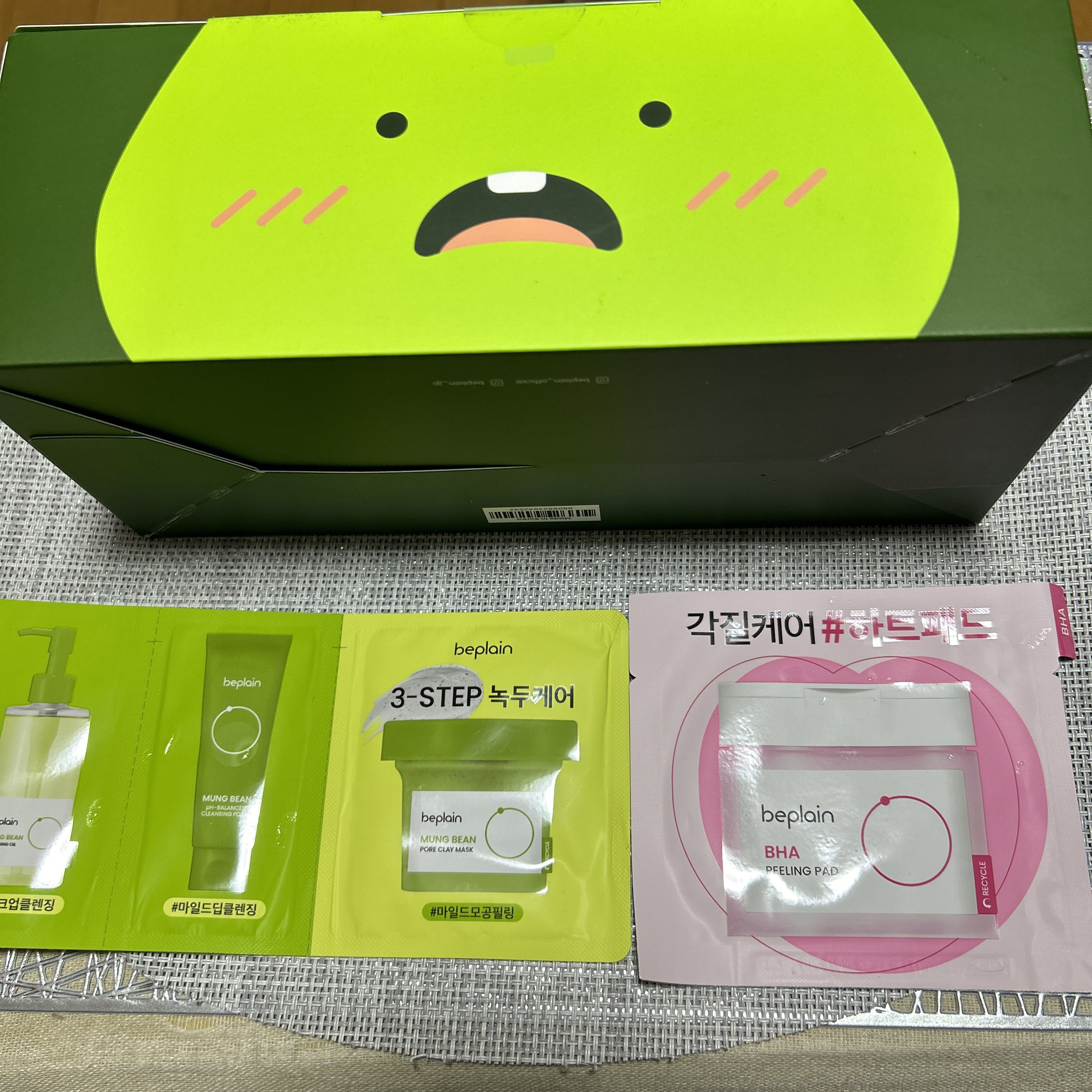 大分前のメガ割購入品です🤗✨beplain緑豆クレンジングオイル緑豆毛穴クレイパック緑豆弱酸性洗顔フォーム緑豆ミルクピーリングジェル緑豆バランシングトナー サンプルサイズ最近ようやく開封して使い始めました😊毛穴の汚れがスッキリする感じで、お肌...