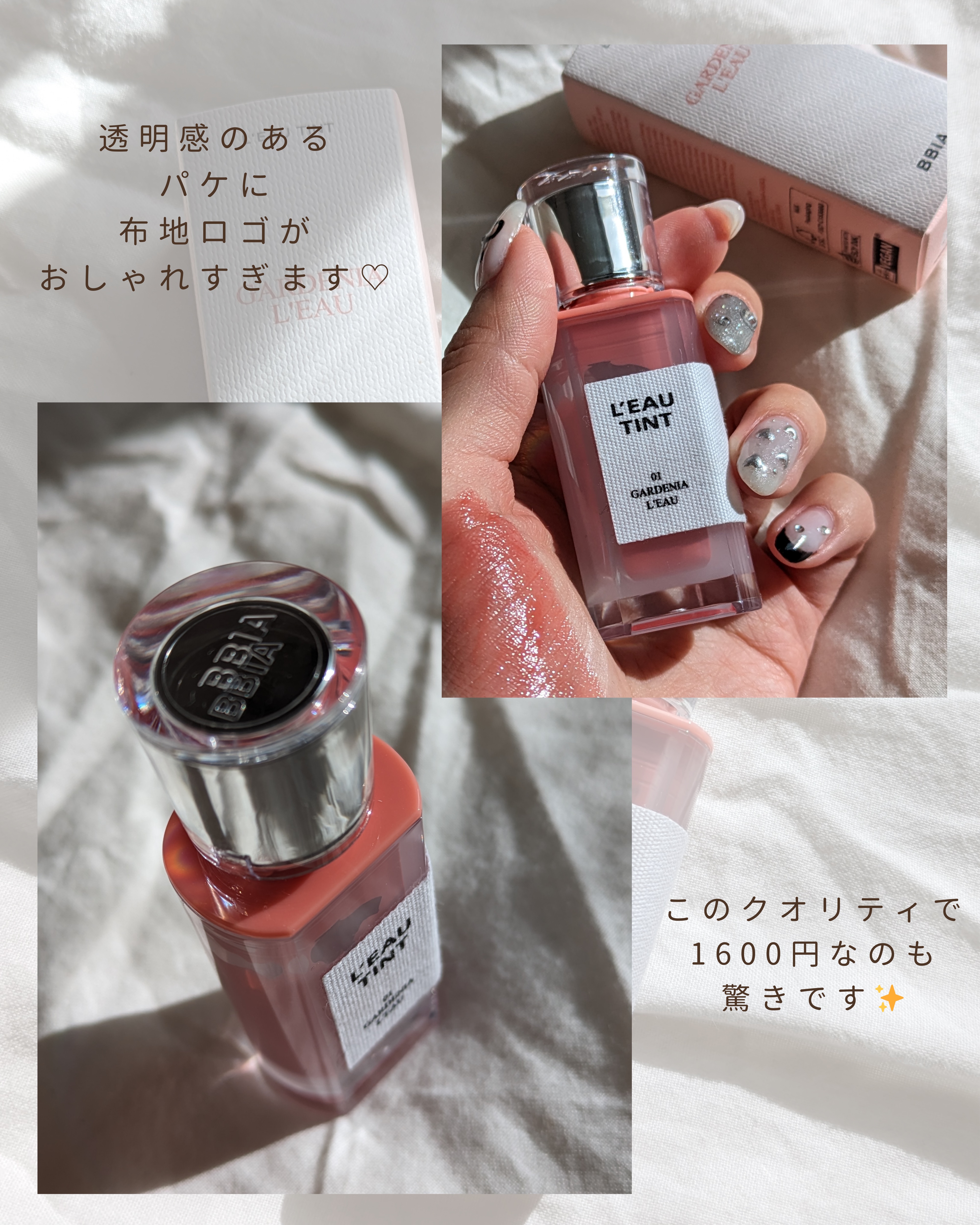 - - うるおいリップなのにしっかりカラーが定着し、時間が経っても塗りたてそのままのカラーを維持 *色が落ちにくいことから「飲み会リップ」としてSNSで話題に - 水のように軽くて快適なグロウティント、塗り重ねるほど鮮やかで透明に浮き上がる水彩画カラー - 香水瓶をイメージしたBBIA初のカスタムデザイン。パッケージはもちろん、カラーとテクスチャーに真心を込めて開発