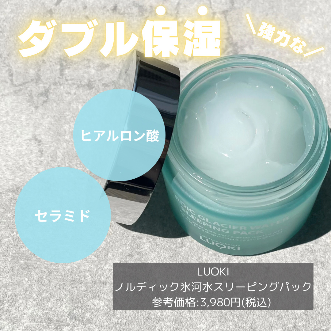 LUOKI@luoki_jp様のモニターキャンペーンよりいただきました💎LUOKI ノルディック氷河水スリーピングパック豊かなミネラルを含むアイスランドの氷河水と保湿と鎮静に役立つ5つの天然由来成分配合ヒアルロン酸とセラミドのダブル保湿ケアシ...