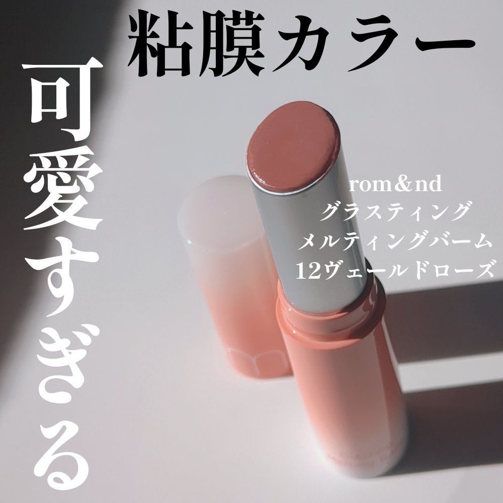 ◝✩💄ロムアンドグラスティングメルティングバーム12ヴェールドローズ透け感と艶のあるローズカラー🤍𐙚ナチュラルに唇の血色感が出てスルスル塗れてしっとりする感じ✧︎塗り心地良いし色味可愛すぎた🫶🏻︎💕#gifted#rom&nd#グラスティング...