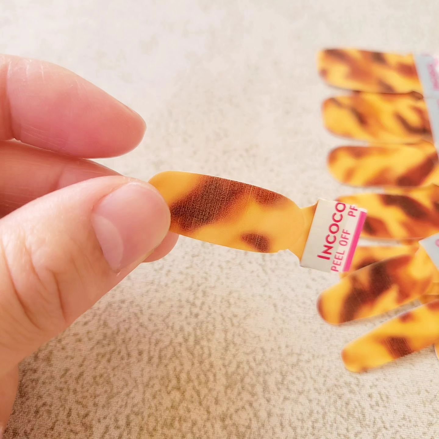 INCOCOマニキュアシート"貼るだけでサロン級ネイルが完成"ということで有名なINCOCO♥️液体タイプのマニキュアから出来ているので薄めのシート💫貼るタイプのマニキュアシートの中でもかなり薄めだと思います🙆🏻♀️よく伸び、爪のカーブにも...