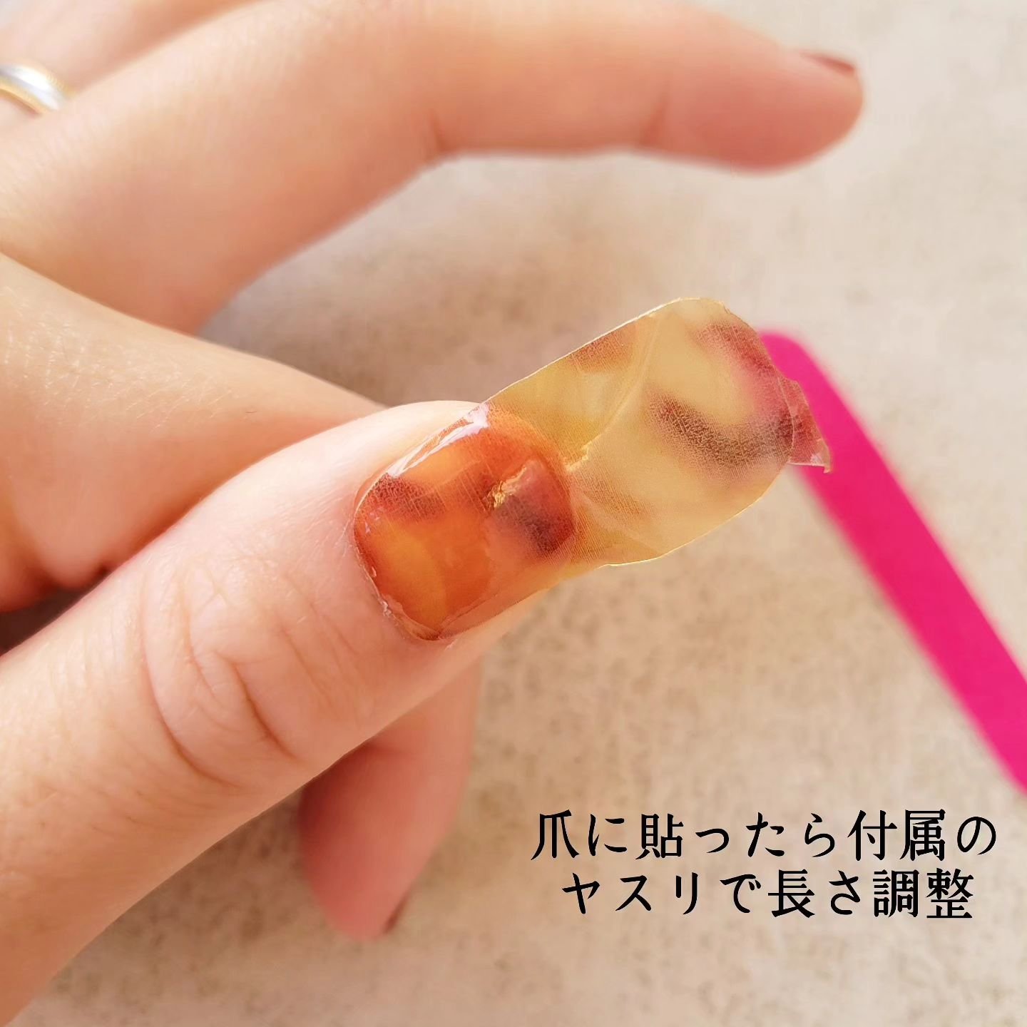 液体のベース、カラー、トップコートの3層を特殊技術でソフトシート化した、貼るだけでサロン級のネイルが作れるアイテム。 薄く柔らかいシートは指でカットできます。 子供がちいさいので、パパに預けてネイルサロンに行くのもなかなか気が引けるのですが、これなら自宅でサッとできる。 乾燥させる時間もいらないので、子供がお昼寝から目覚めてもヨレを気にせずあやしに行ける。 それなのにこのおしゃれデザイン(*'∀'人)♥*+ これはママの味方です☝ これからの季節にタイガーアイ気に入った。 久しぶりのネイルに旦那さんも喜んでくれて セルフでした事に驚いてた。 ホントめっちゃ種類あるから、気に入るの絶対見つかる。