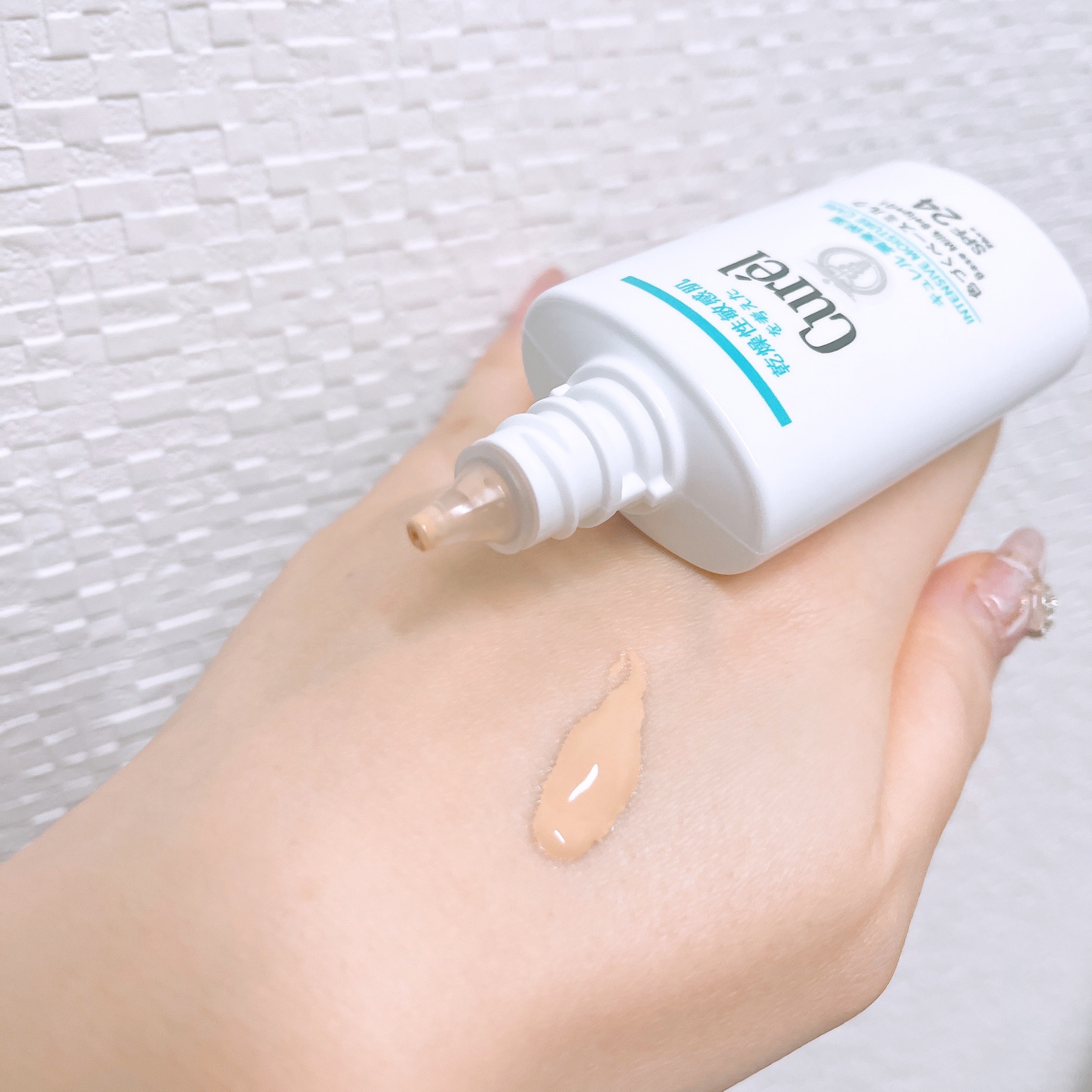 〖キュレル潤浸保湿色づくベースミルクベージュ02〗サンプルの使用です。自然な肌色だけどかなり色が濃くて褐色肌に😭薄く伸びて密着するから軽めにベースしたい日には良さそうだけど、01も結構暗そうだからカラバリ増えて欲しい😭使用感は好きなのに😭...