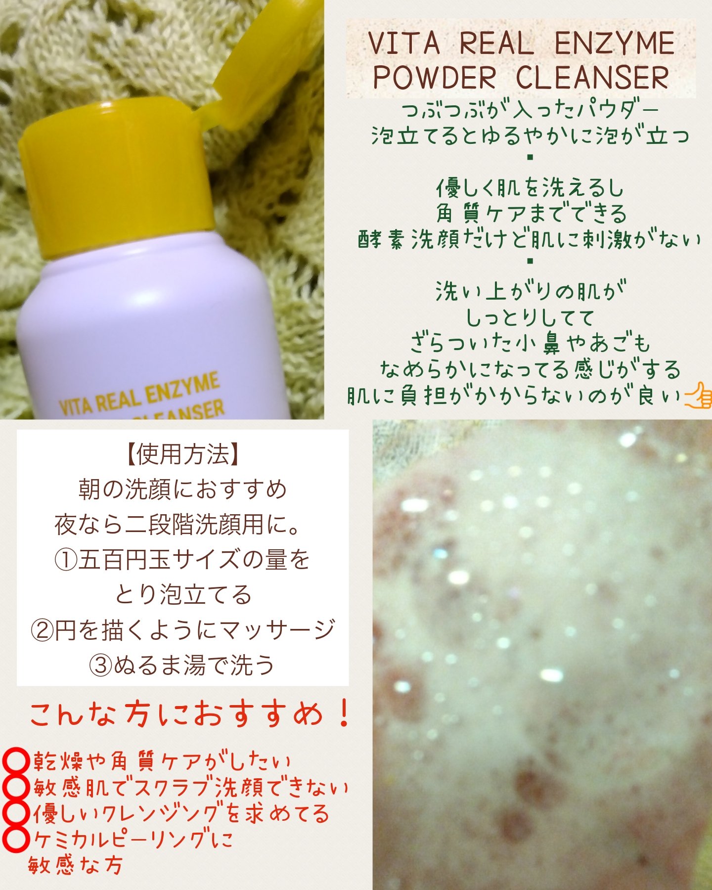 I'mfromフィグエンザイムパウダークレンザー♡イチジク酵素でつるんと肌へ✨角質・皮脂・老廃物のトリプル洗顔!パウダータイプ少しずつ水を加えて泡立てるよ🫧ふわふわの泡はやさしい洗い心地🙌洗い流すとしっとりなめらか♡肌つっぱらないのも良かった...